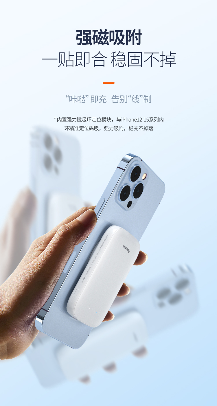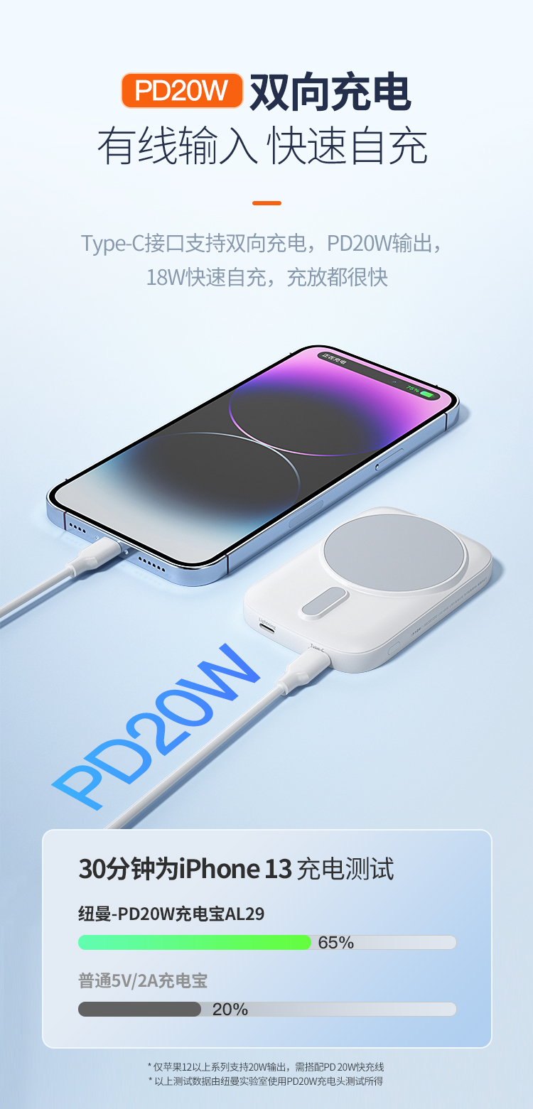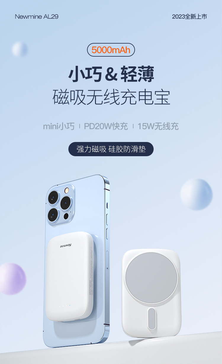 纽曼15W磁吸充电宝5000毫安DP20W双向快充双输出双输入AL29 单位:个 白色