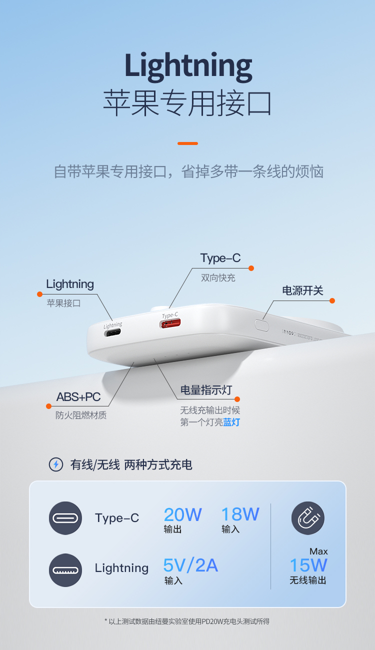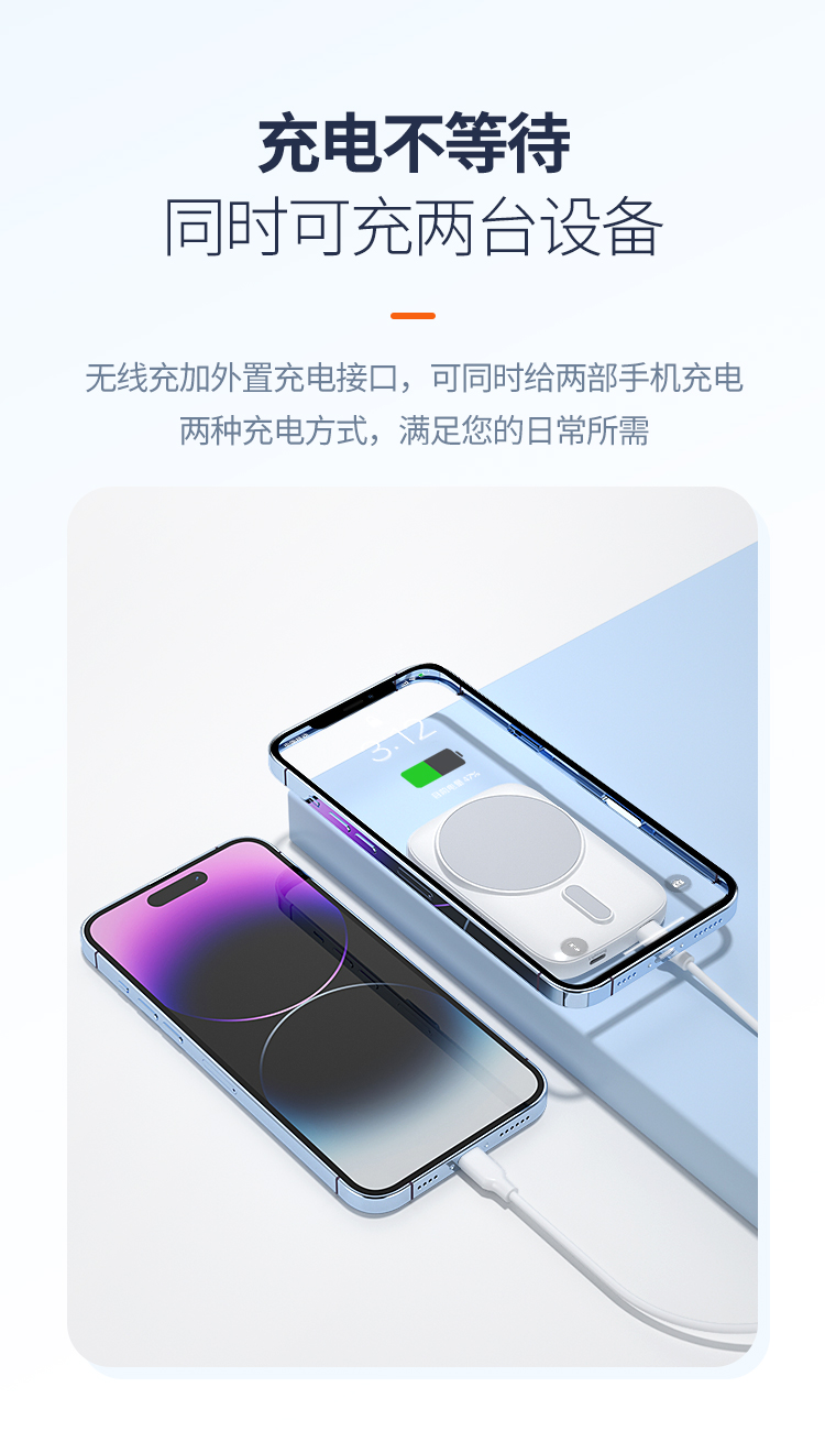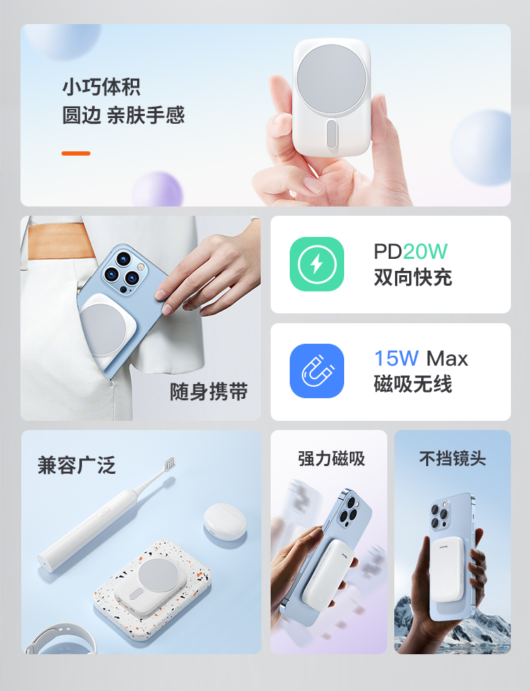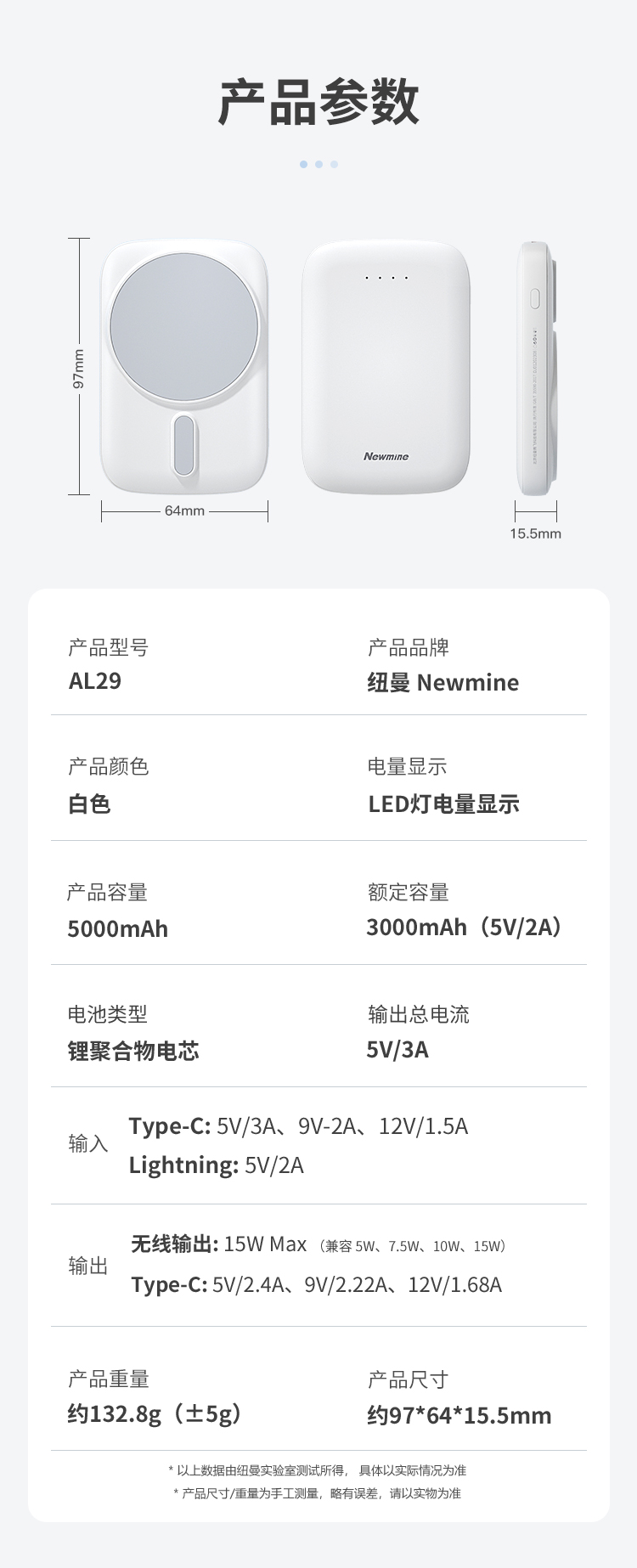 纽曼15W磁吸充电宝5000毫安DP20W双向快充双输出双输入AL29 单位:个 白色