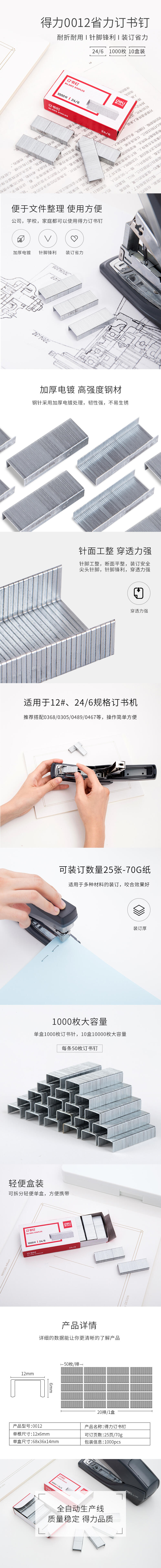 得力(deli)高强度订书钉 12#订书针 1000枚/盒 24盒装 办公用品 0012 银色