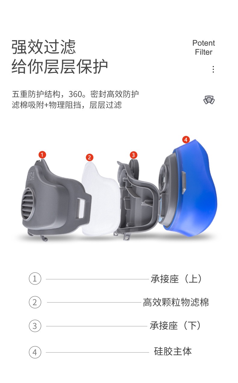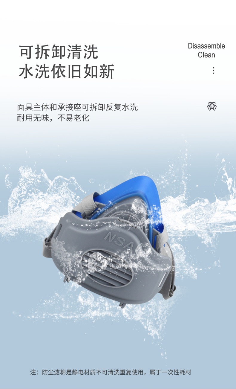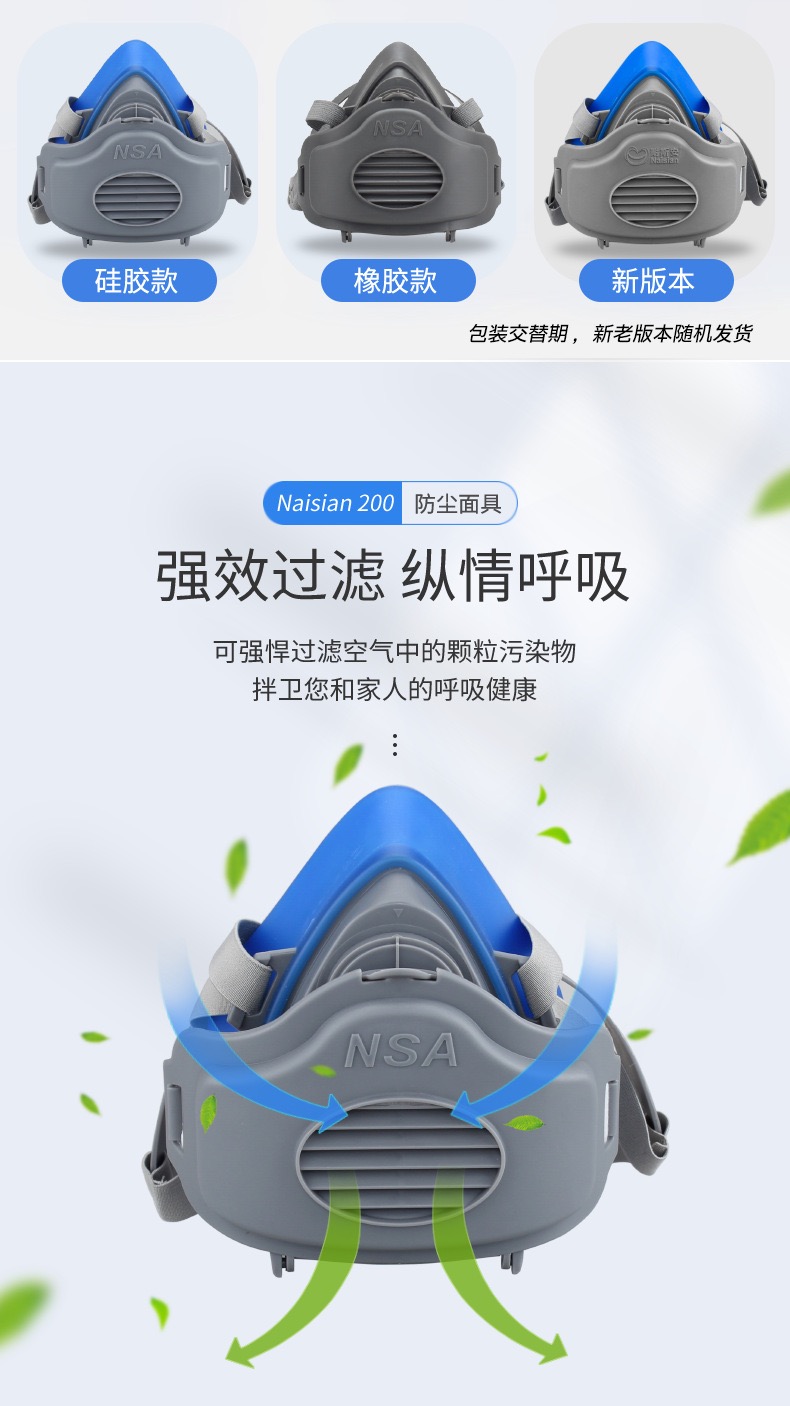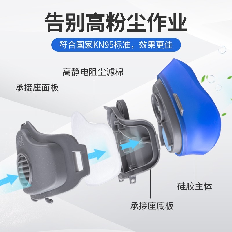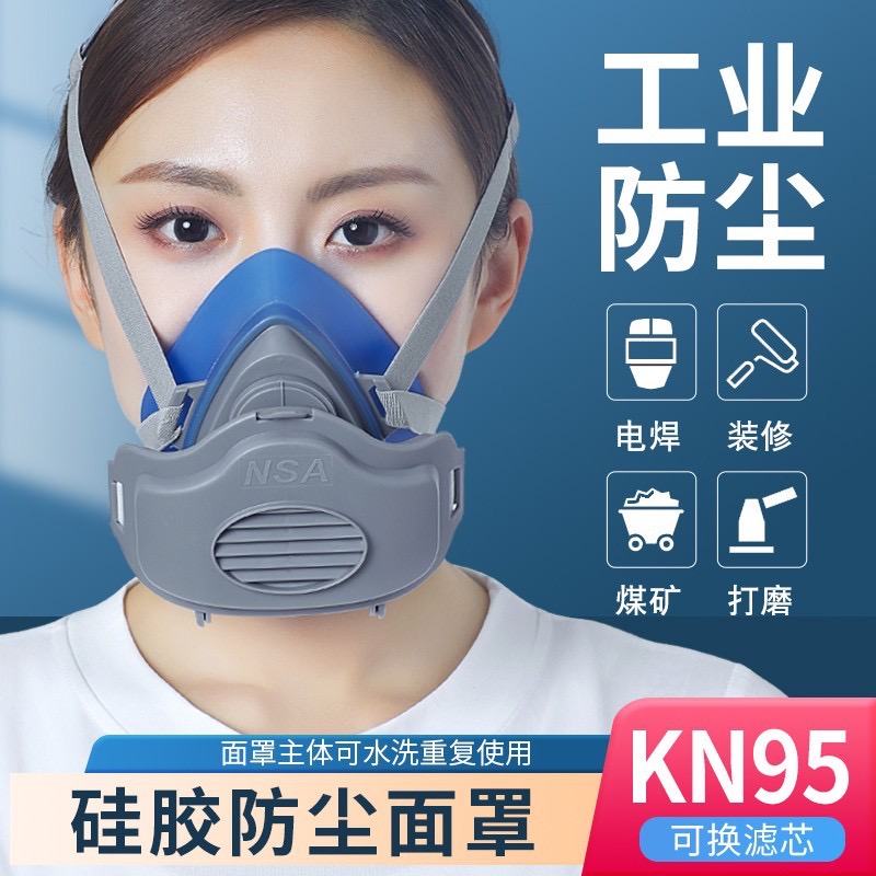 耐斯安防尘口罩防工业粉尘打磨煤矿装修专用硅胶防护面罩劳保面具 浅灰色