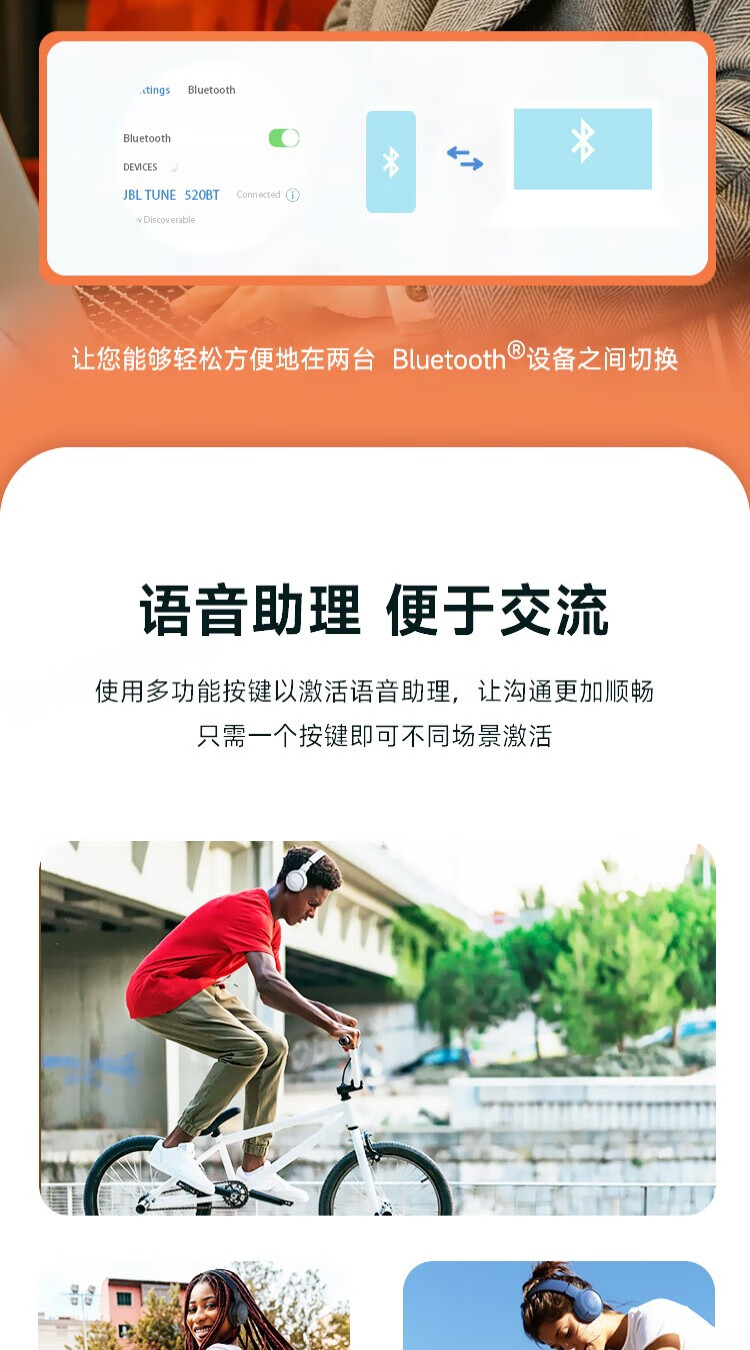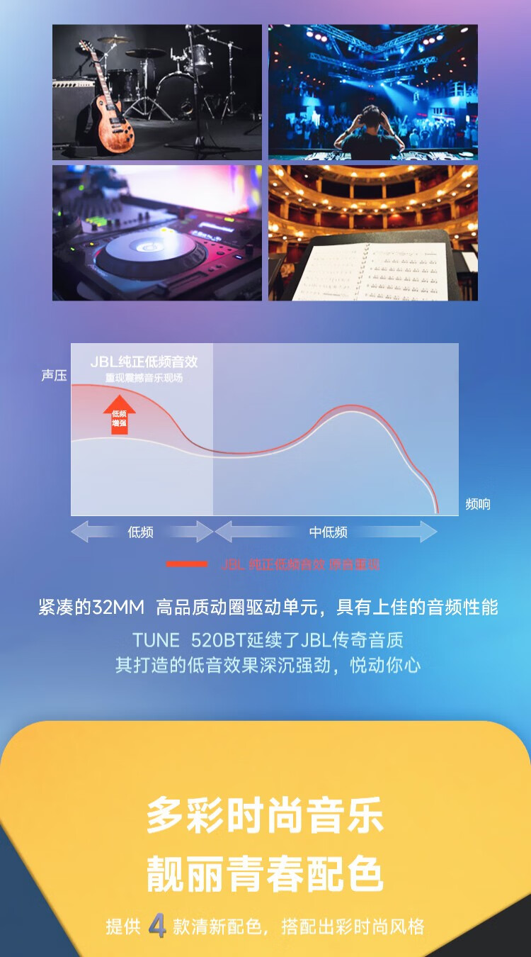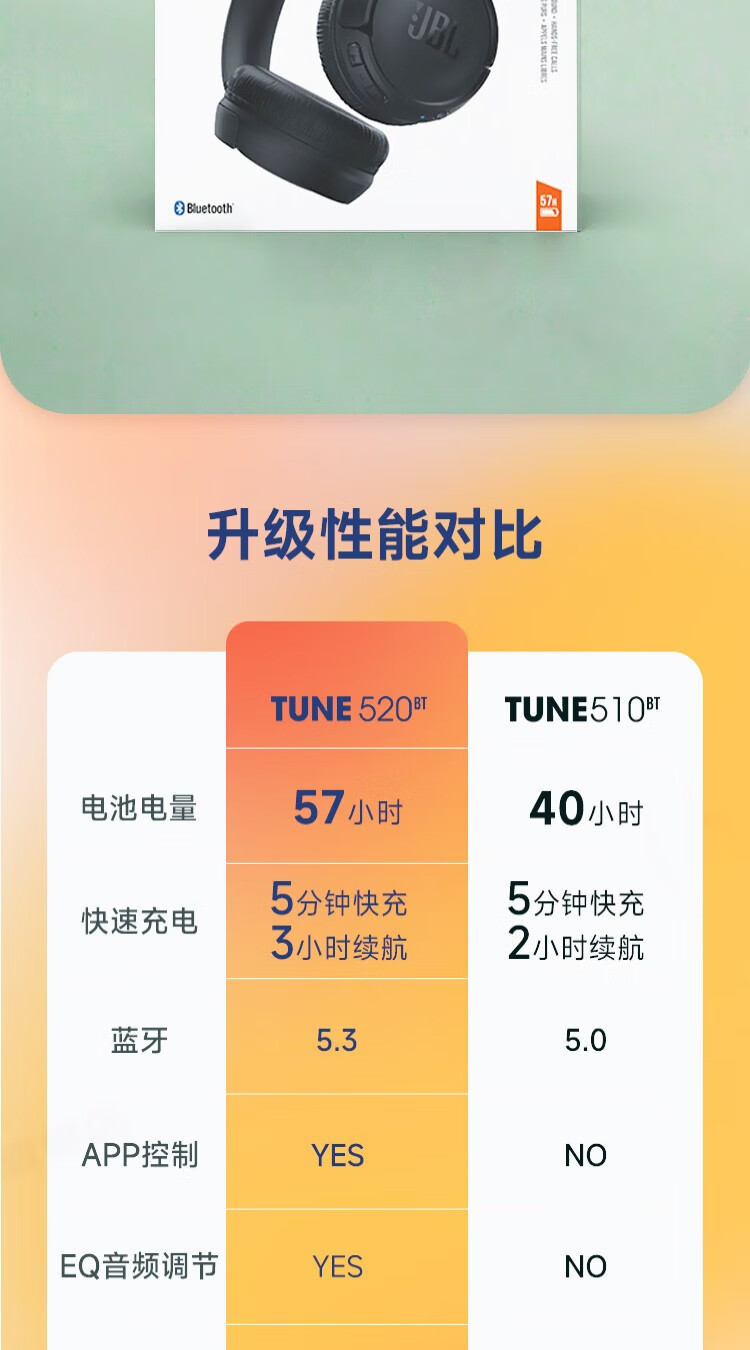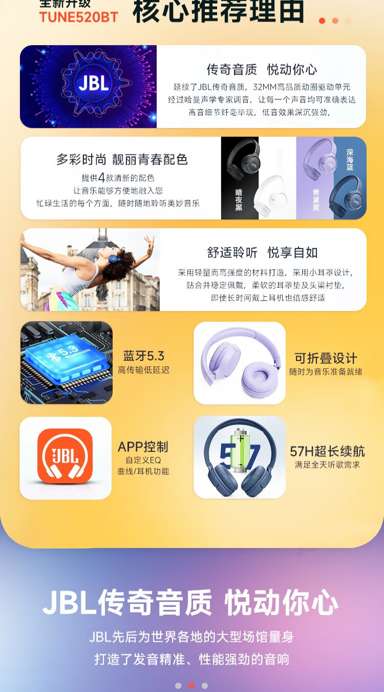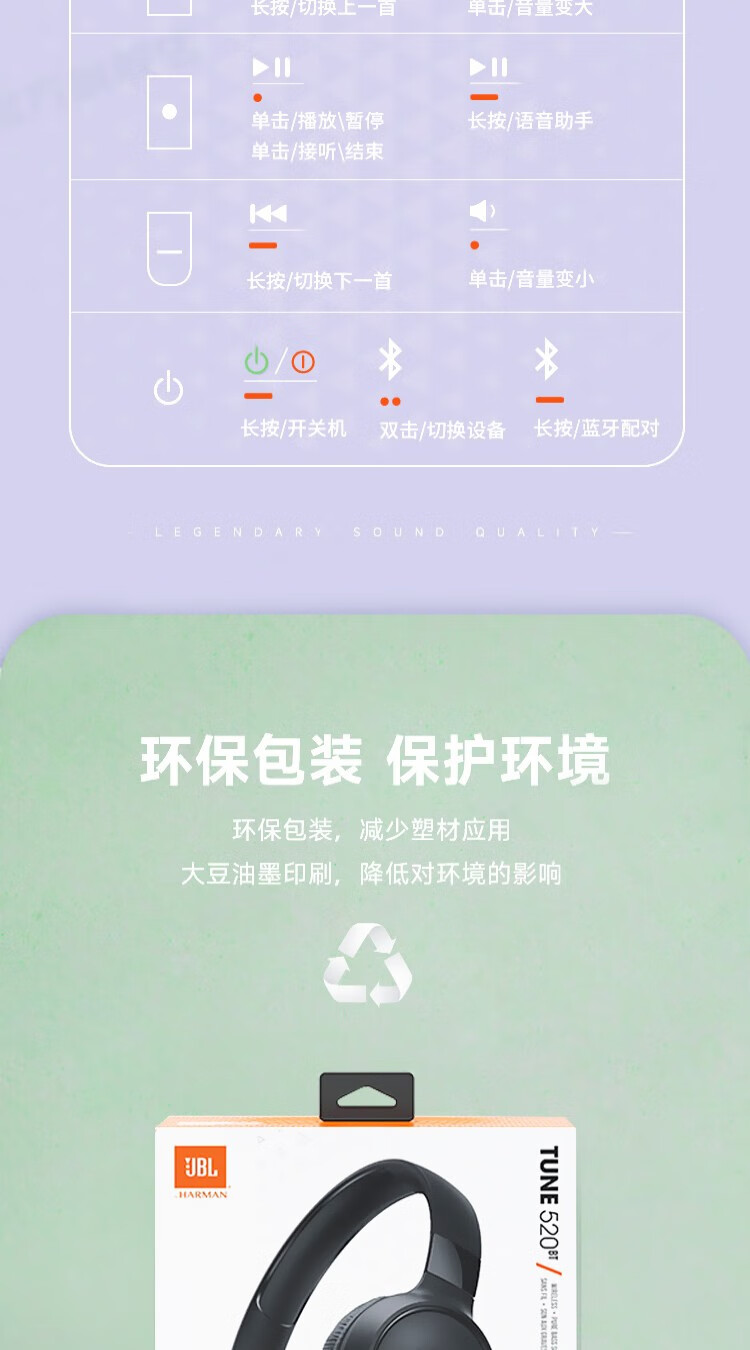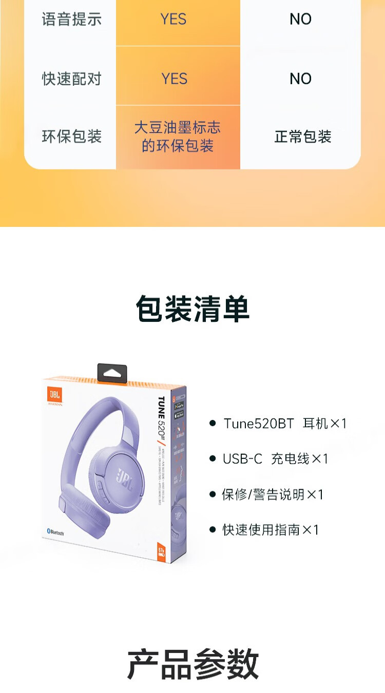 JBL TUNE520BT 头戴式蓝牙耳机 通话降噪耳机(个) 紫色