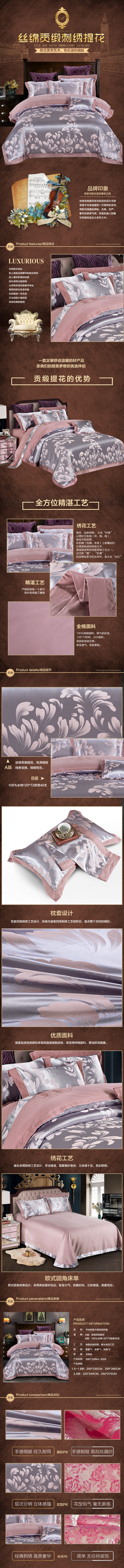 多奇曼贡缎提花绣花四件套PH-T2327 水汐-绸缎蓝