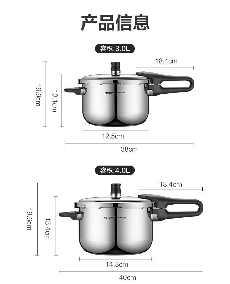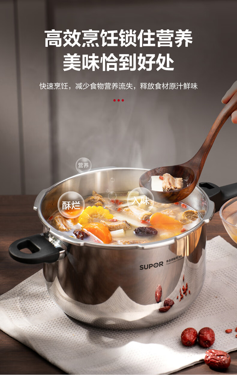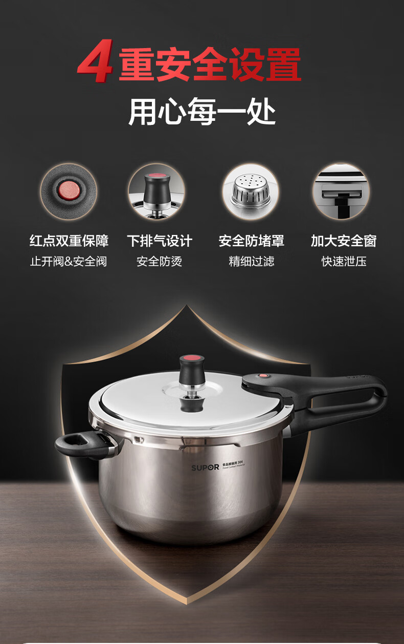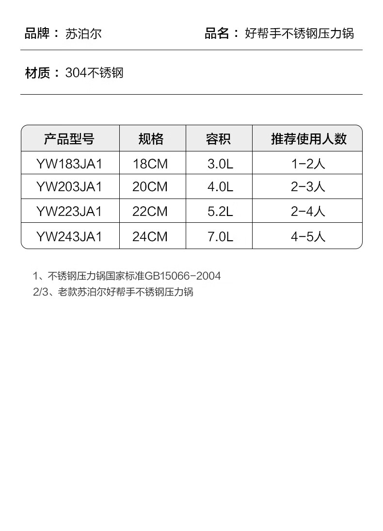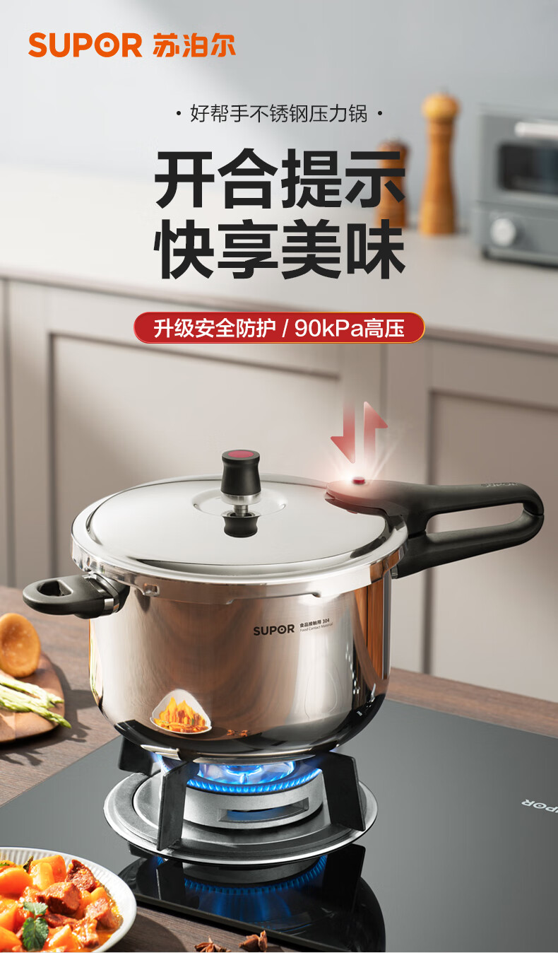 苏泊尔(SUPOR) 好帮手不锈钢压力锅4L YW203JA1 20CM 不锈钢色(单位:个)