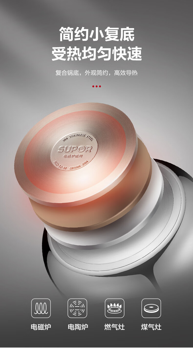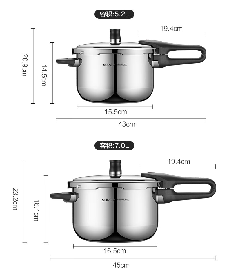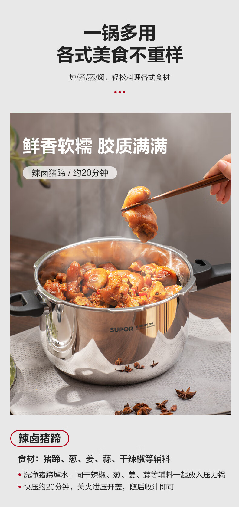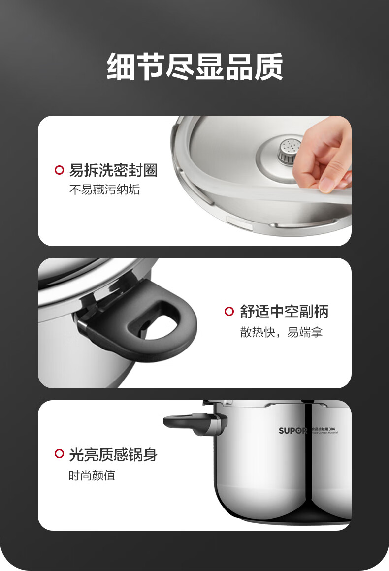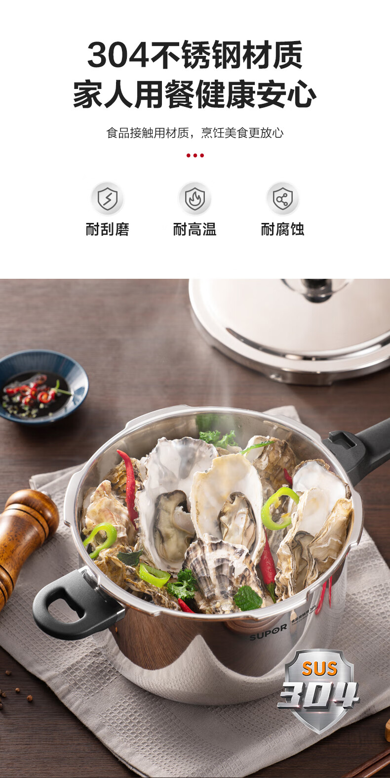 苏泊尔(SUPOR) 好帮手不锈钢压力锅4L YW203JA1 20CM 不锈钢色(单位:个)