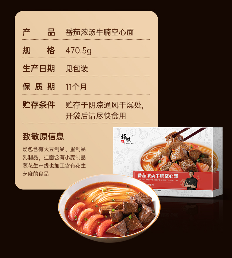 锋味派番茄浓汤牛腩空心面470.5g*2(单位:盒) 自然色