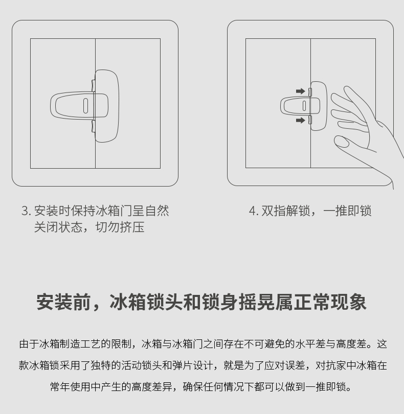 攸曼诚品(eudemon)冰箱锁儿童安全锁宝宝婴儿防夹手柜门锁扣灰色2个装(单位:个) 灰色