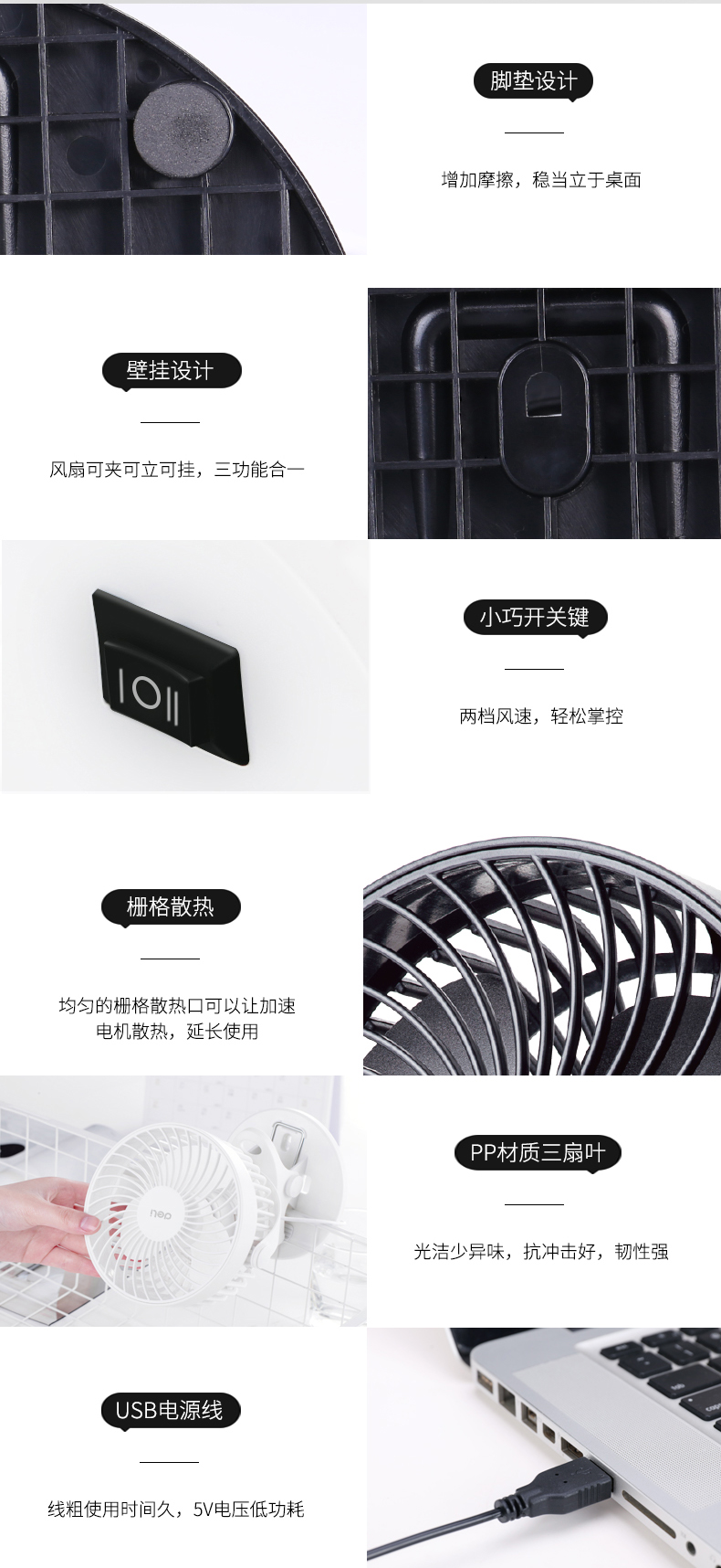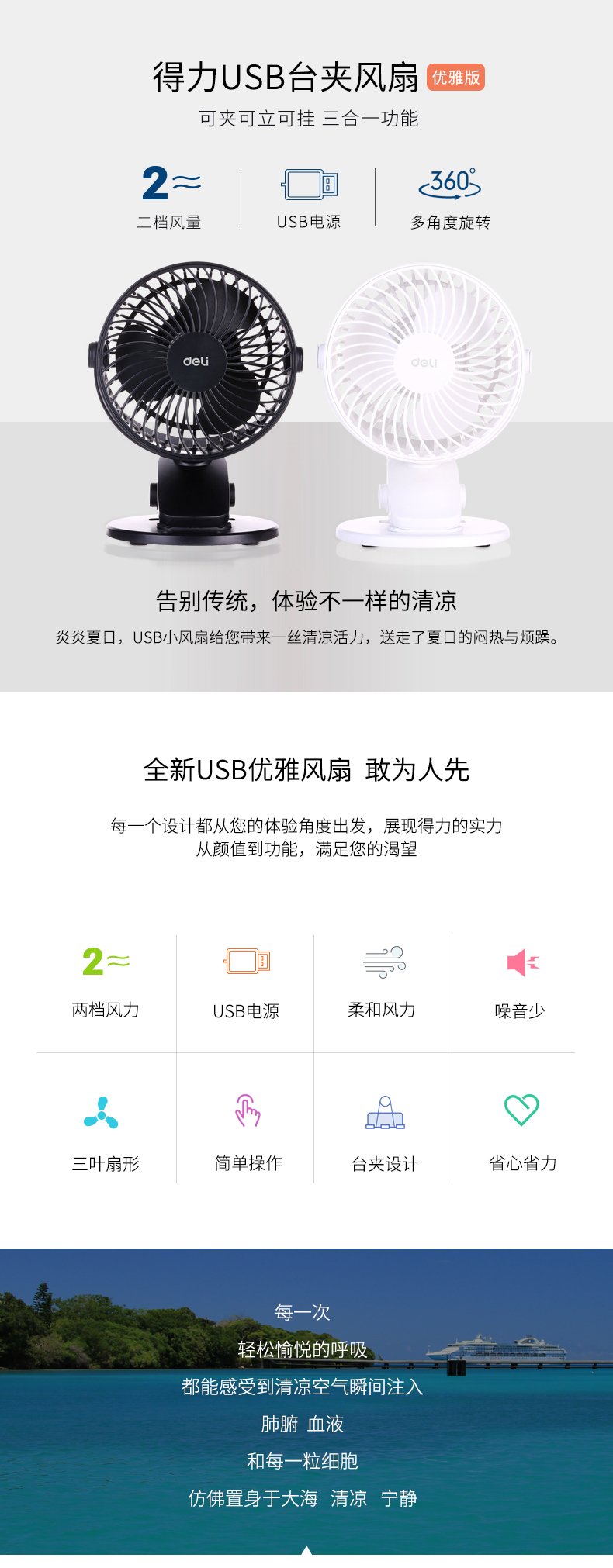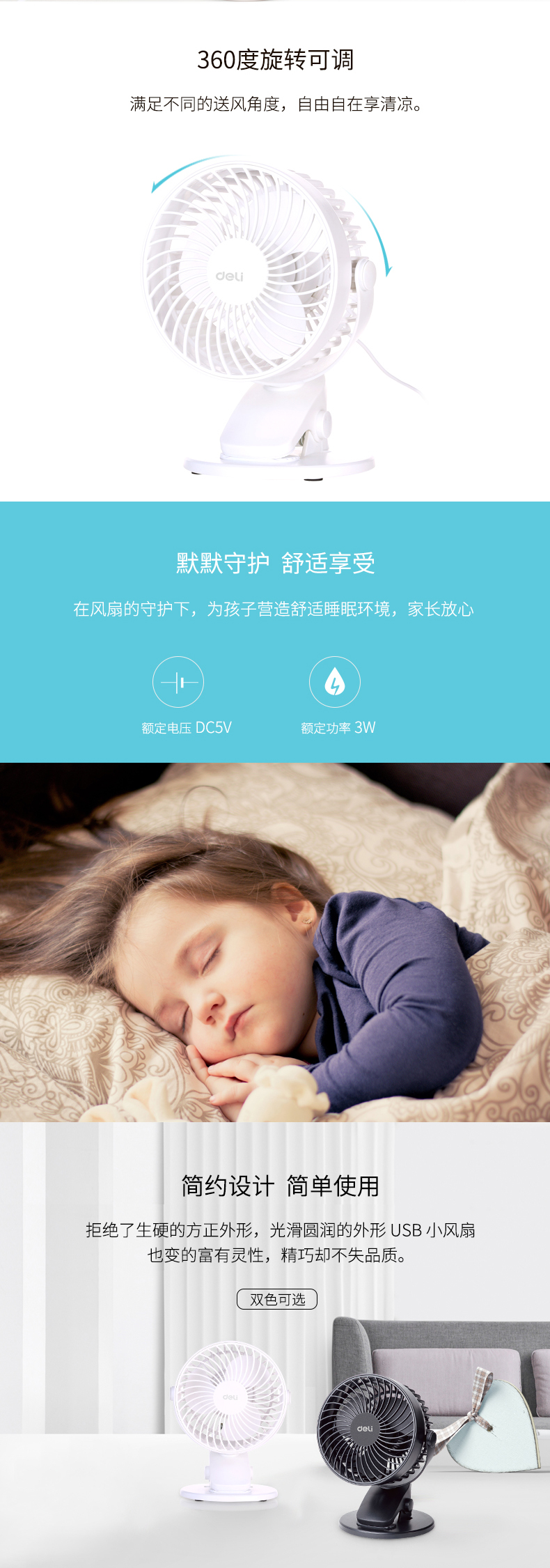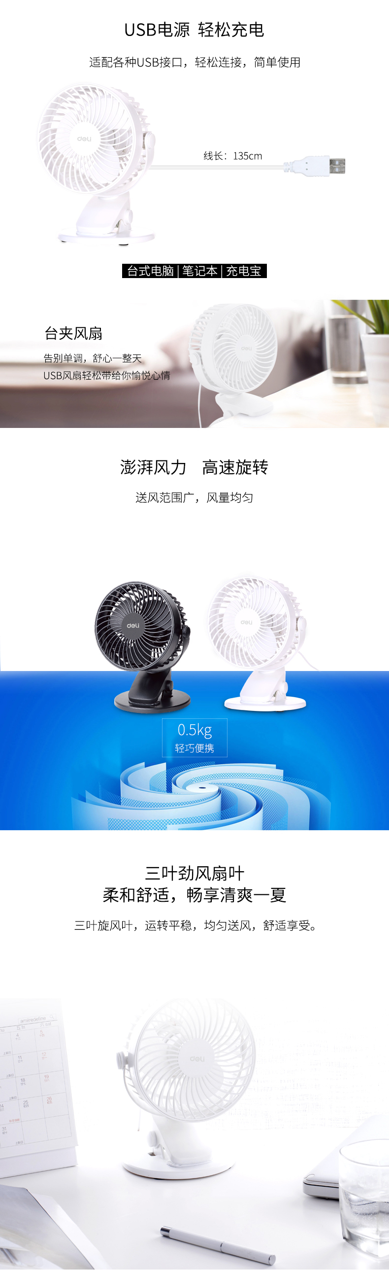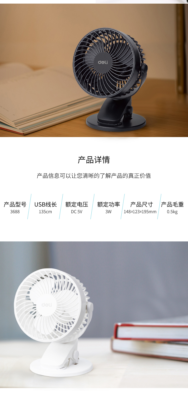 得力(Deli)USB桌面风扇5寸两档风速台夹风扇3688(单位:台) 黑色
