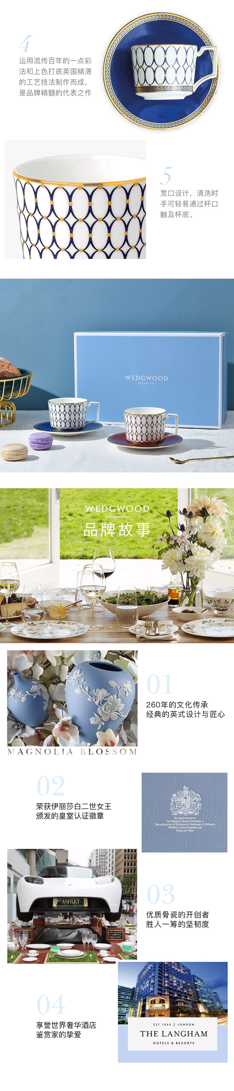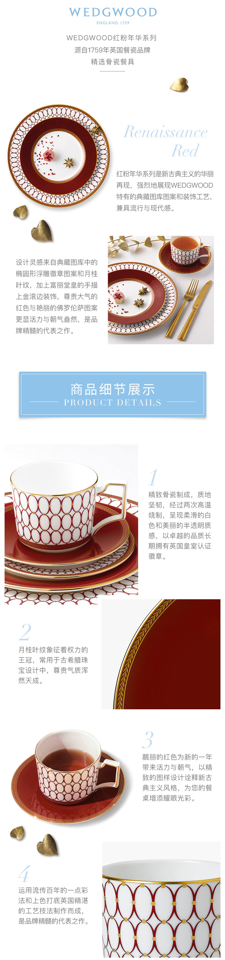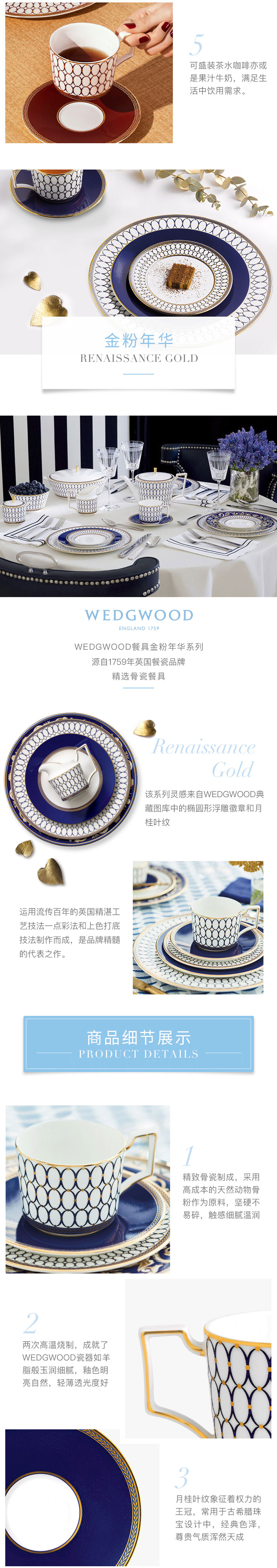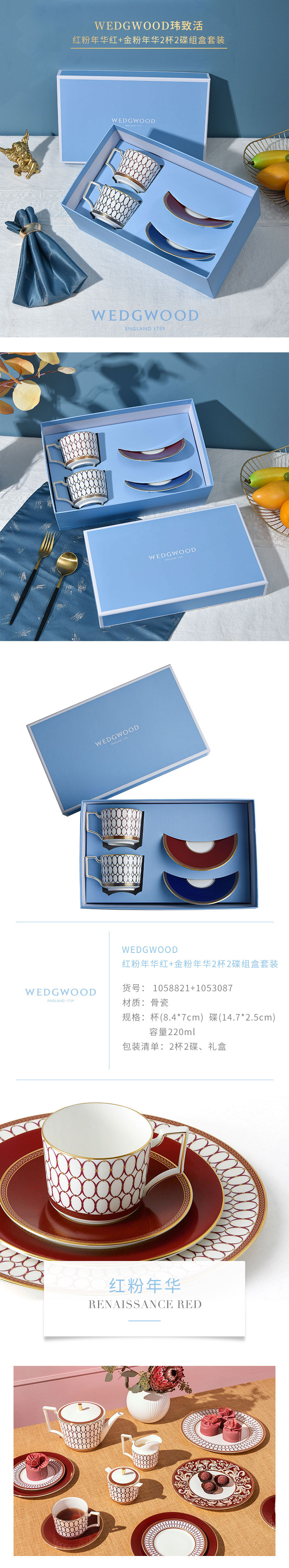 WEDGWOOD威基伍德 金粉年华鎏金红+午夜蓝2杯2碟组盒套装