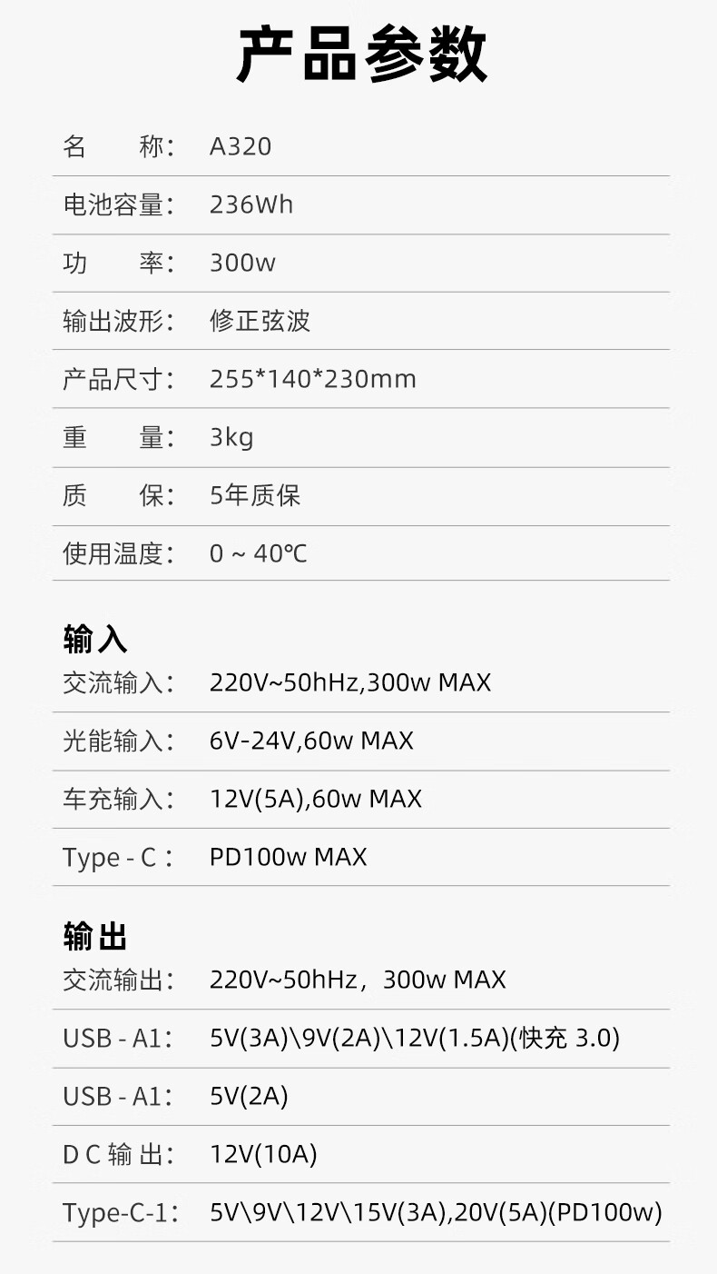 纽曼A320户外储能电源锖色(单位:个) 黑色