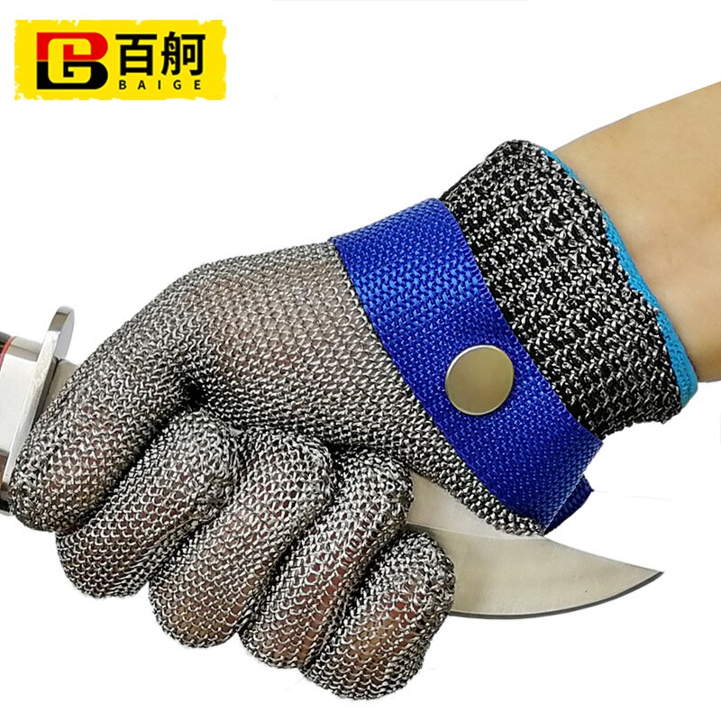 百舸 316不锈钢5级防割手套 防刺防咬防切防护钢丝铁手套 一只(单位:只) 灰色