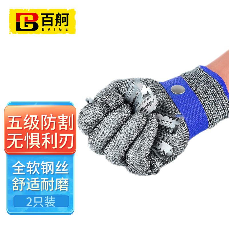 百舸 316不锈钢5级防割手套 防切防刺扎裁剪防护钢丝铁手套 2只(单位:副) 灰色