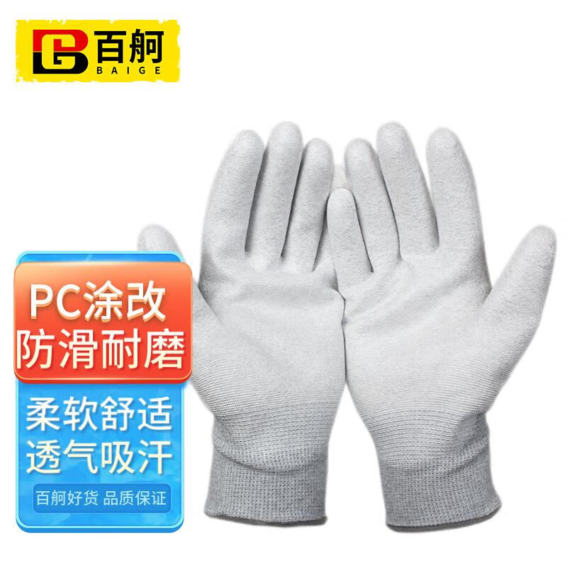 百舸 PU手套 碳纤维涂掌手套L码 10双(单位:包) 灰色