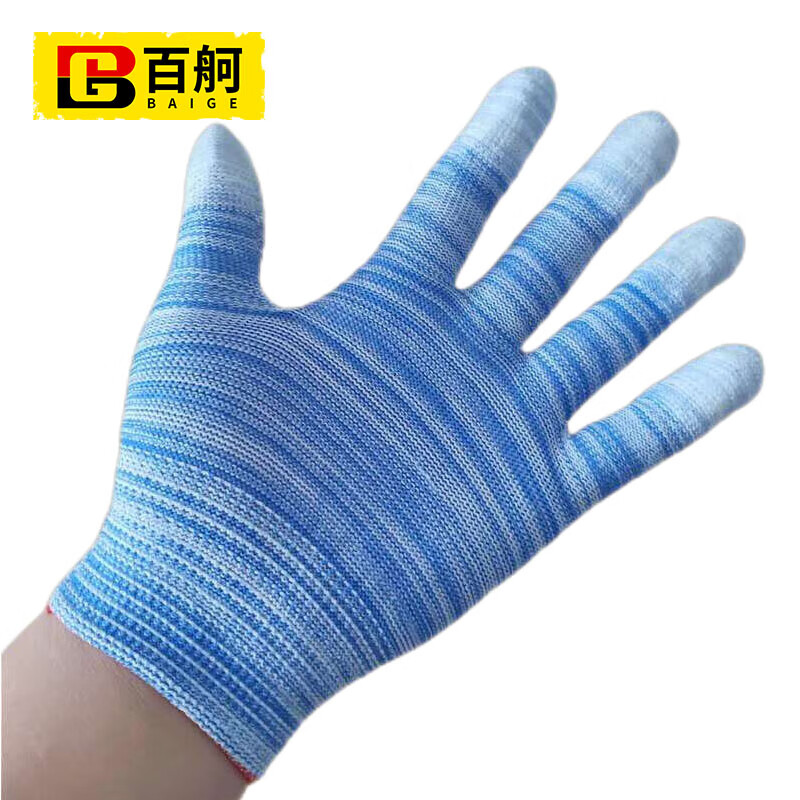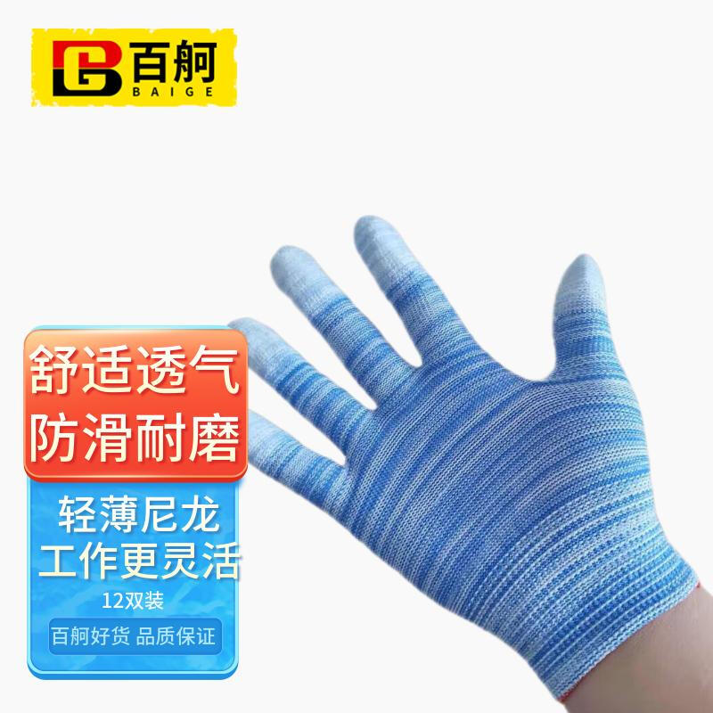 百舸 PU涂指尼龙线手套 薄款透气 12双(单位:包) 彩色