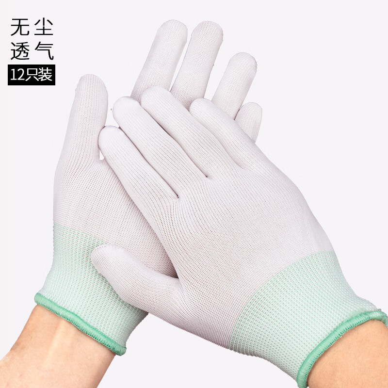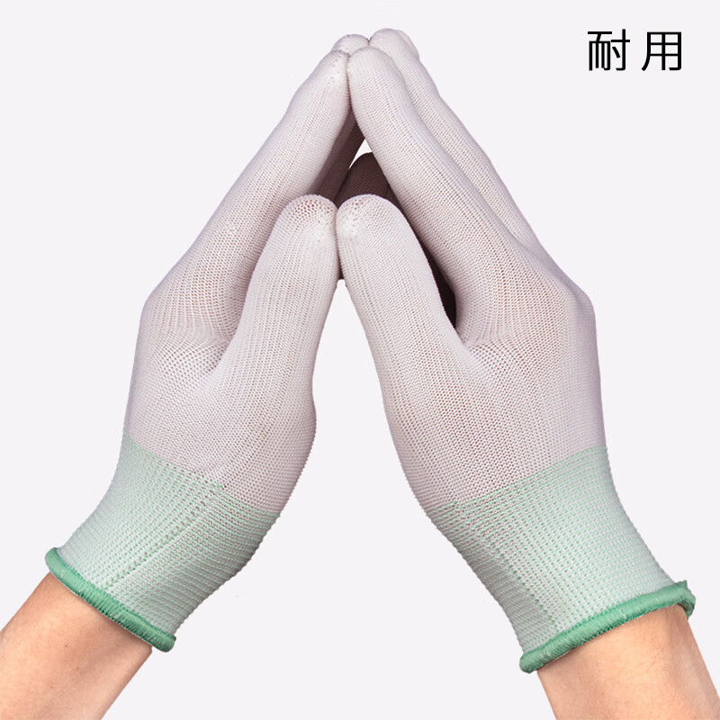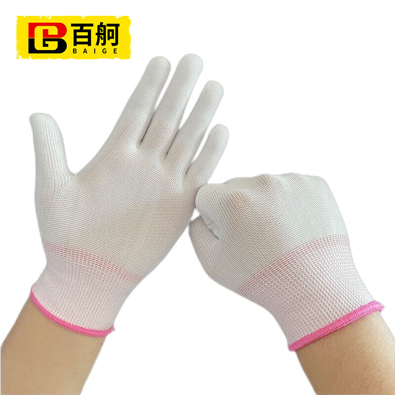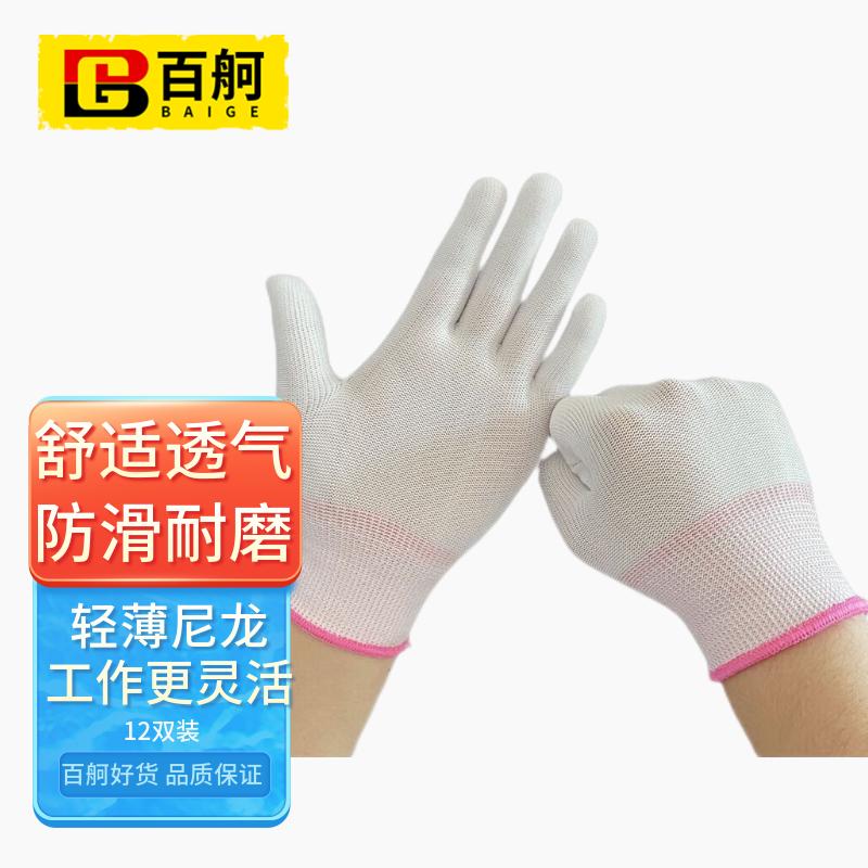 百舸 PU涂指尼龙线手套 薄款透气耐磨涂层涂胶 12双(单位:包) 白色