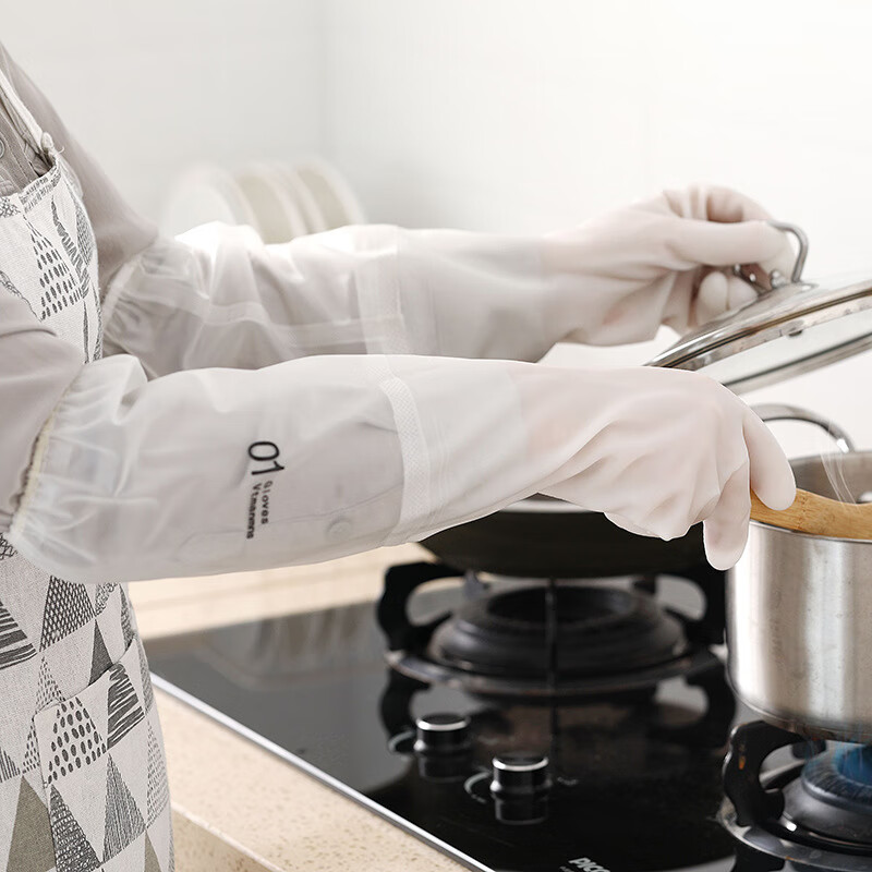 百舸 厨房清洁手套 防水加长pvc手套 (宽口单层) 均码(单位:双) 白色