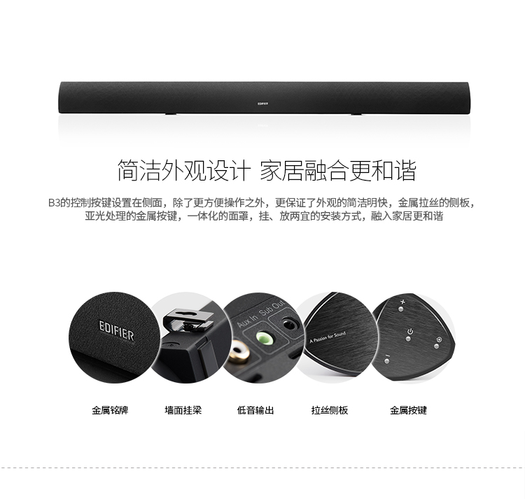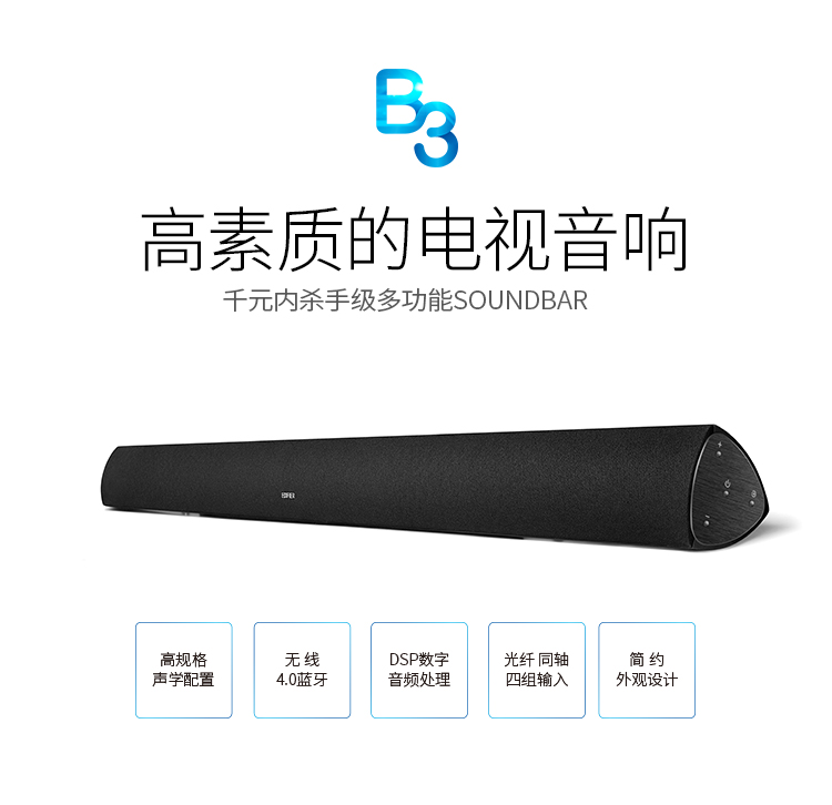 漫步者B3电视音响黑色(单位:套) 曜石黑