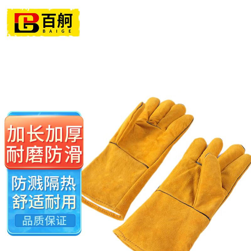 百舸 电焊手套 耐磨加长加厚 黄色一副(单位:副) 黄色