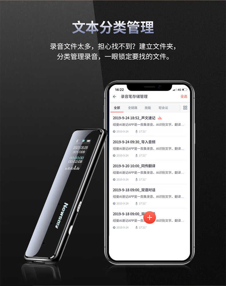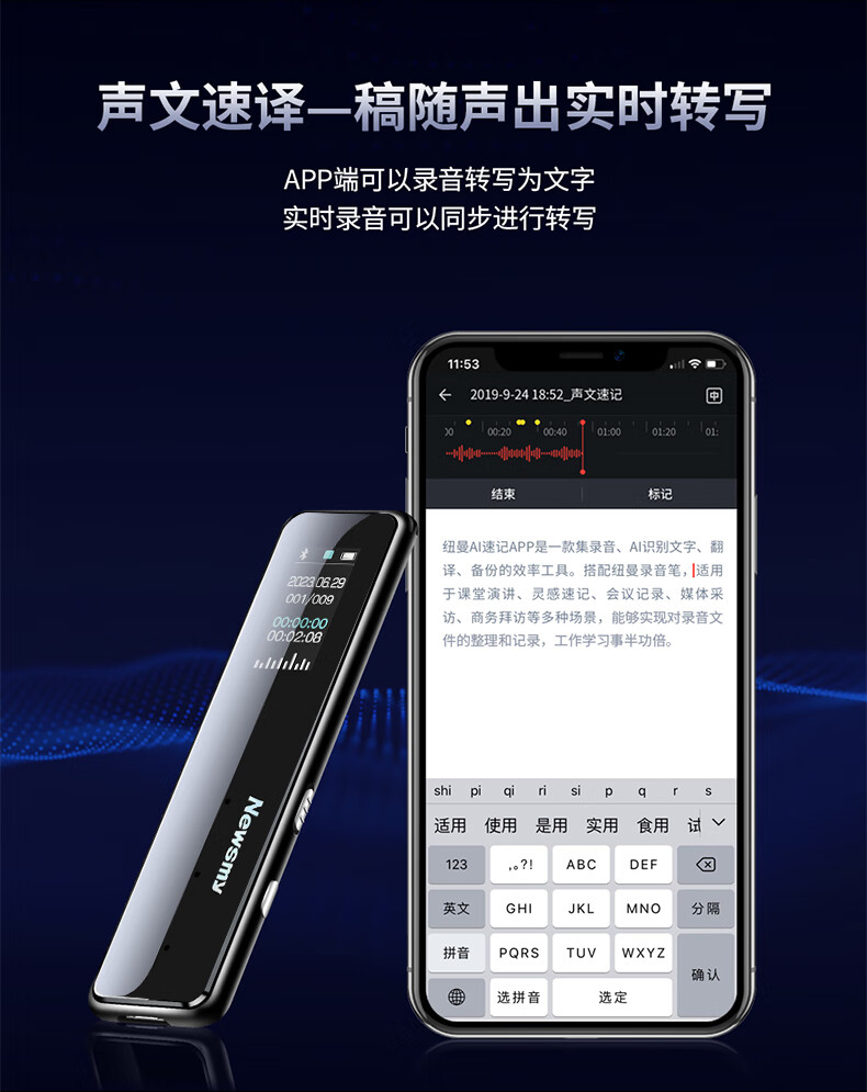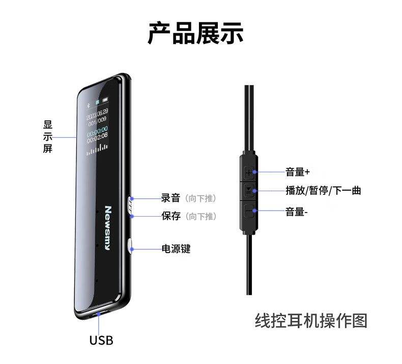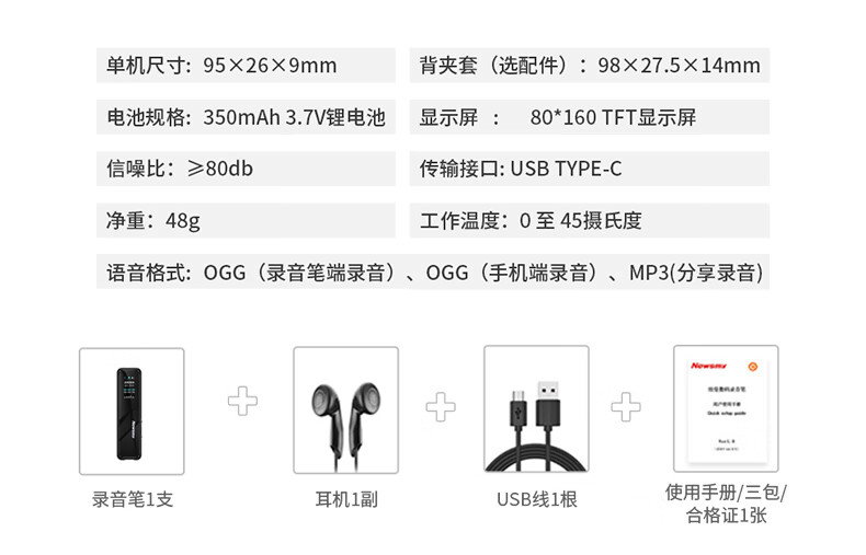 纽曼XD01-64G录音笔黑色(单位:个) 曜石黑