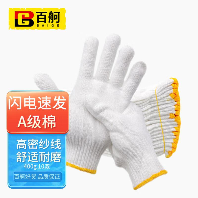 百舸 劳保手套 加密棉纱棉线手套 A级棉10付装(单位:包) 白色