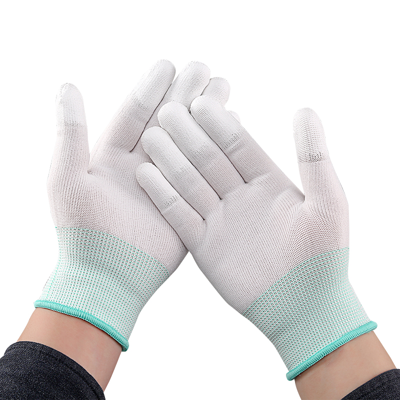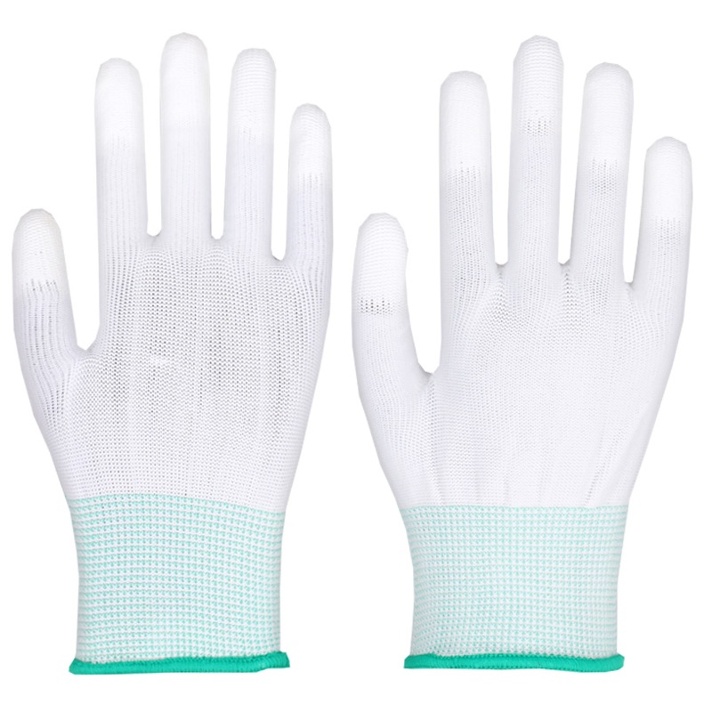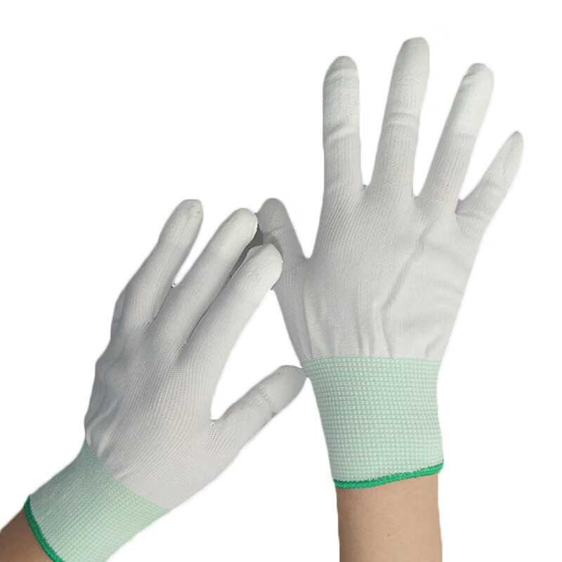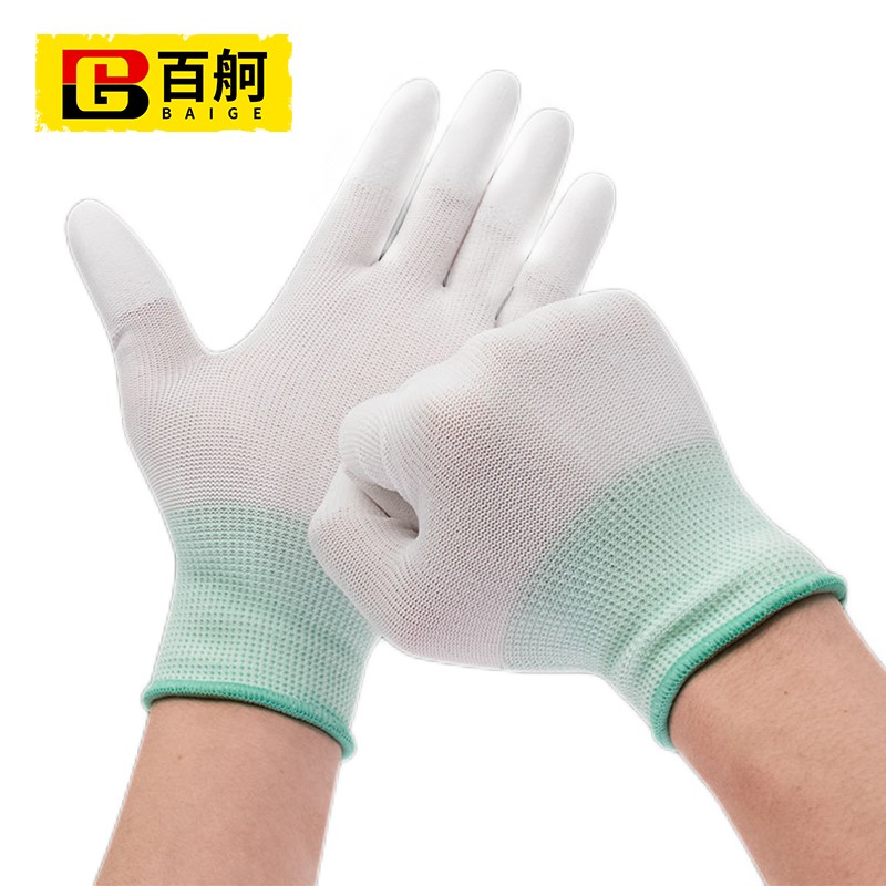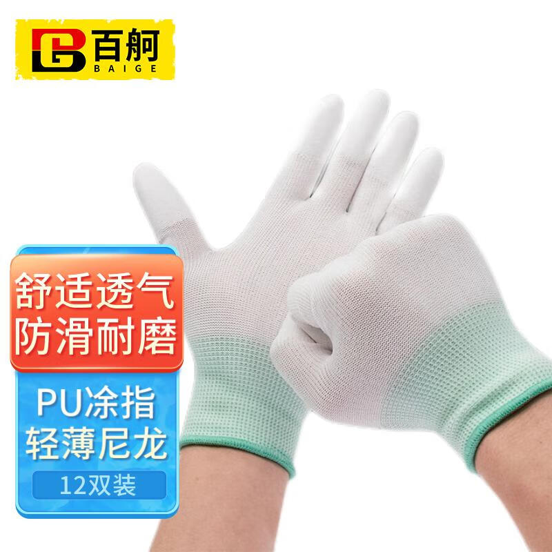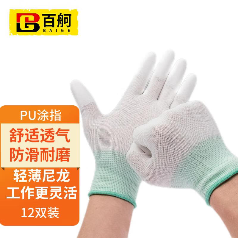 百舸 尼龙PU涂指 浸胶涂层透气手套 12双(单位:包) 白色