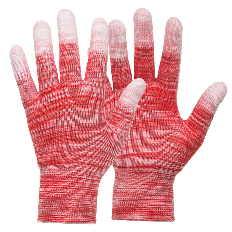 百舸 尼龙PU涂指 浸胶涂层透气手套 12双绿色(单位:包) 绿色
