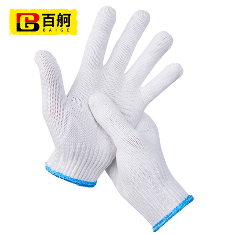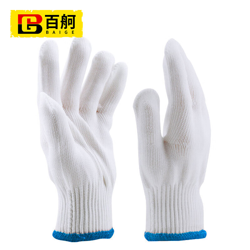 百舸 尼龙线劳保手套 透气耐磨 600g 12双(单位:包) 白色