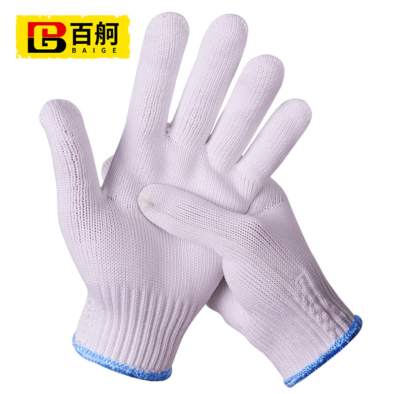 百舸 尼龙线手套 透气耐磨 2.5kg 60双(单位:组) 白色