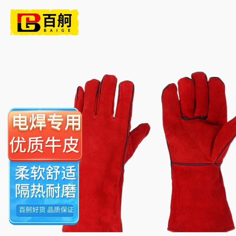 百舸 牛皮电焊手套 耐高温防烫加长加厚 1双(单位:双) 红色