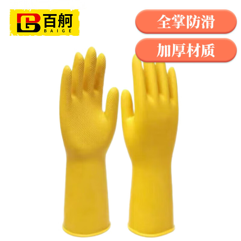 百舸 乳胶手套 防滑耐磨橡胶丁腈涂层 加厚 均码 1双(单位:双) 黄色
