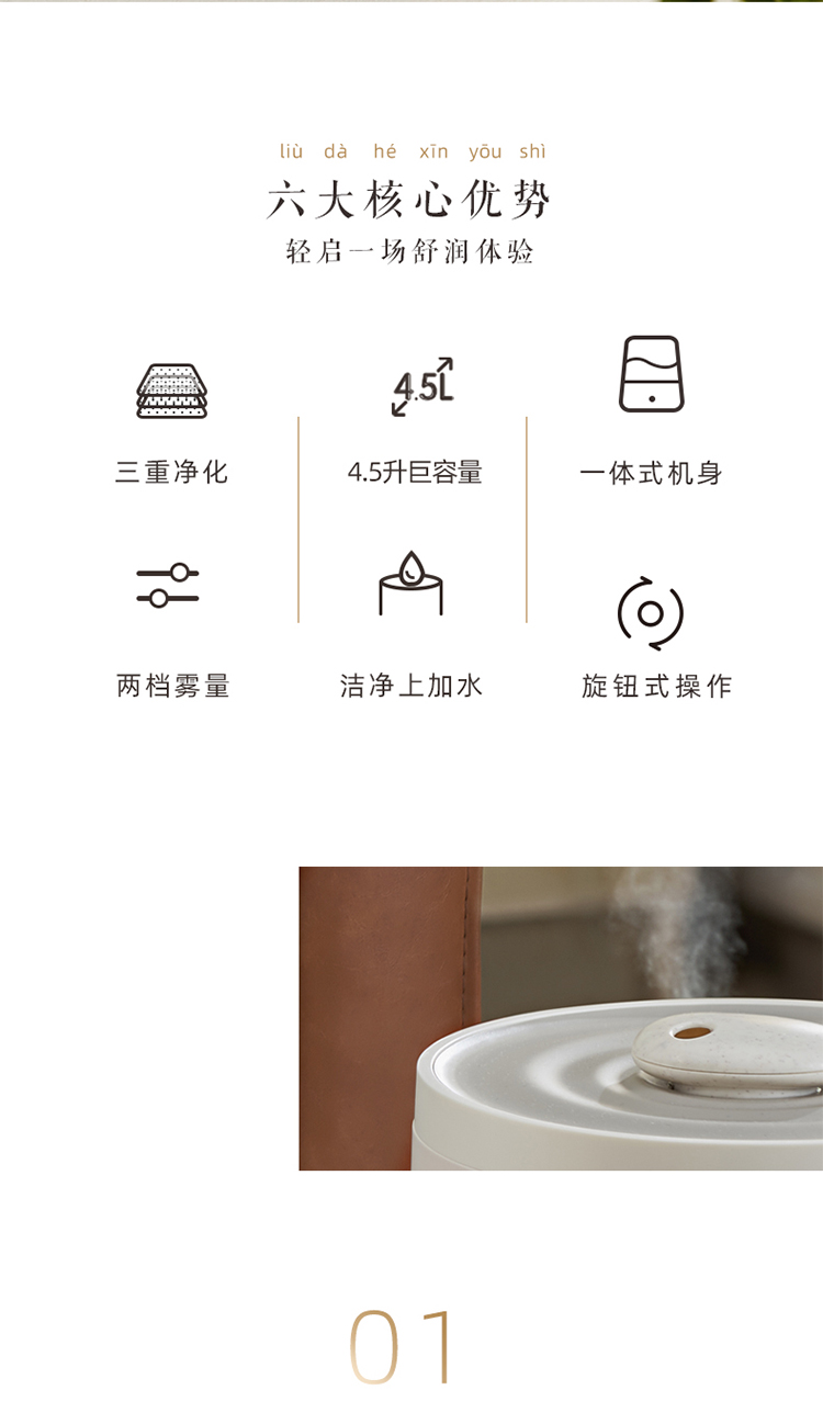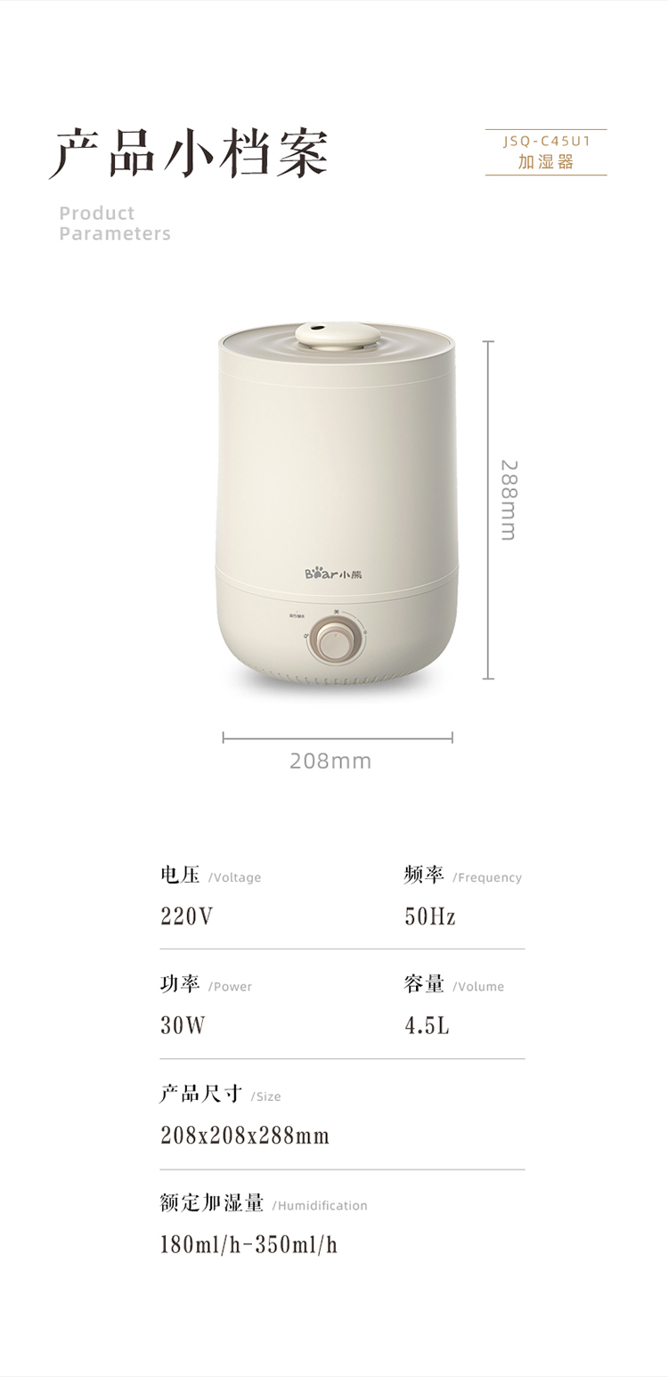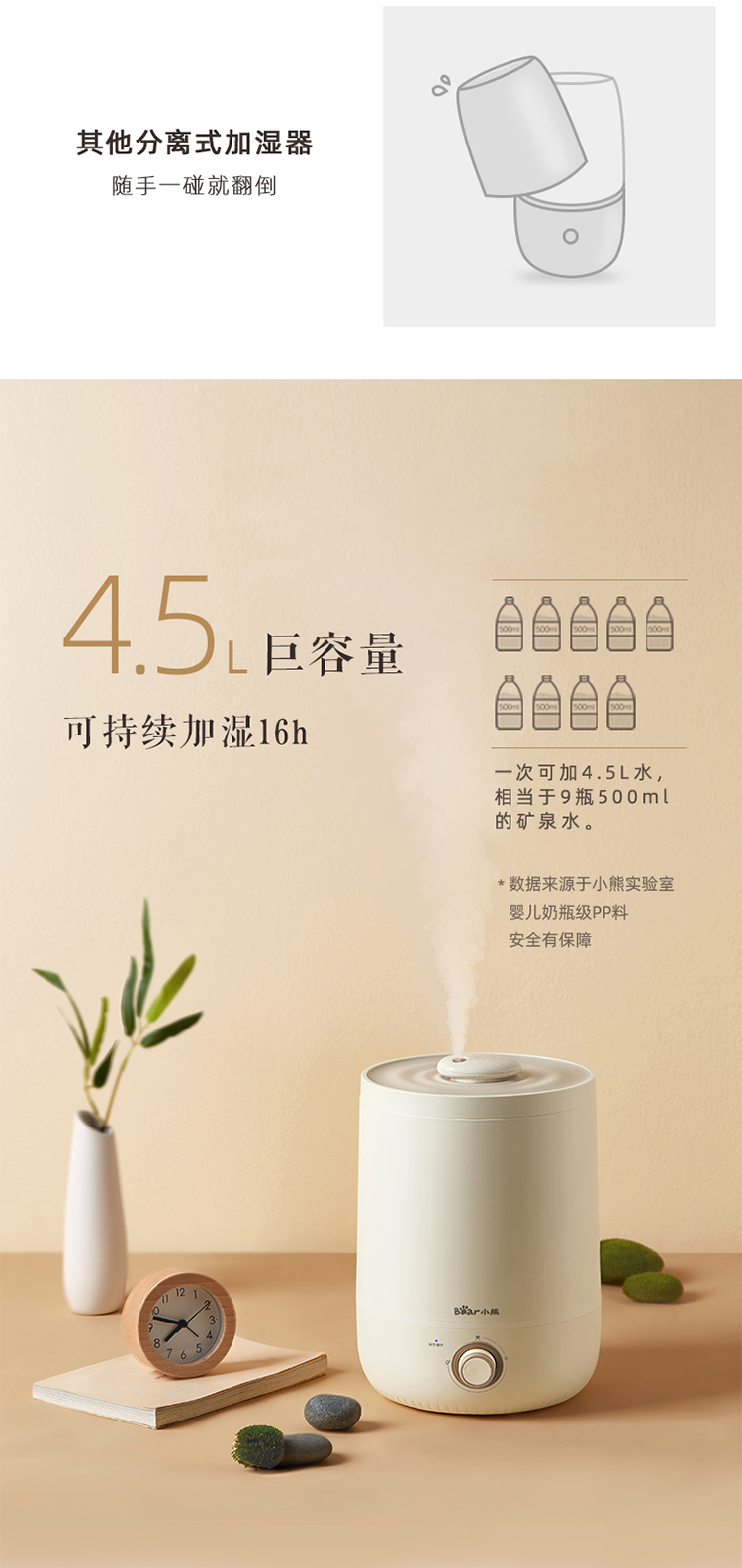 小熊(Bear) JSQ-C45U1加湿器 上加水 银离子水箱+4.5L容量/台 米黄色