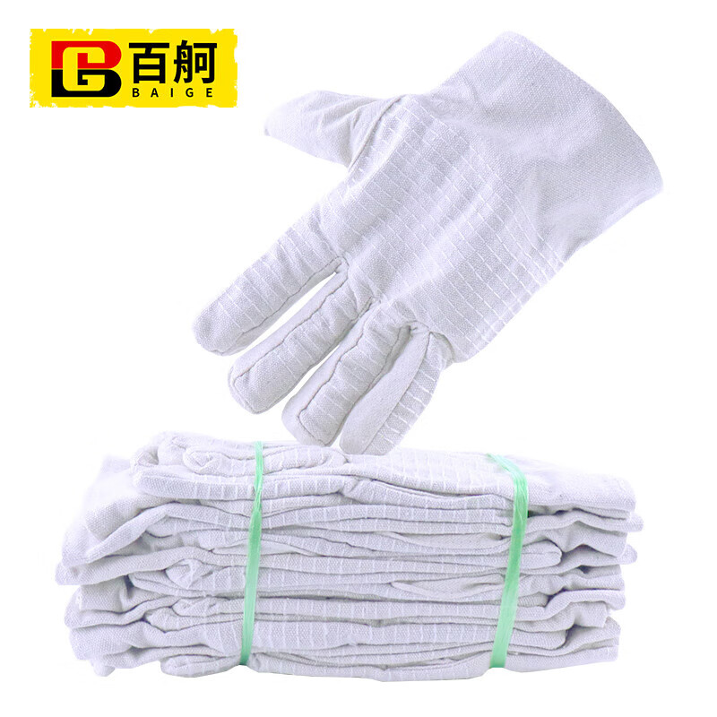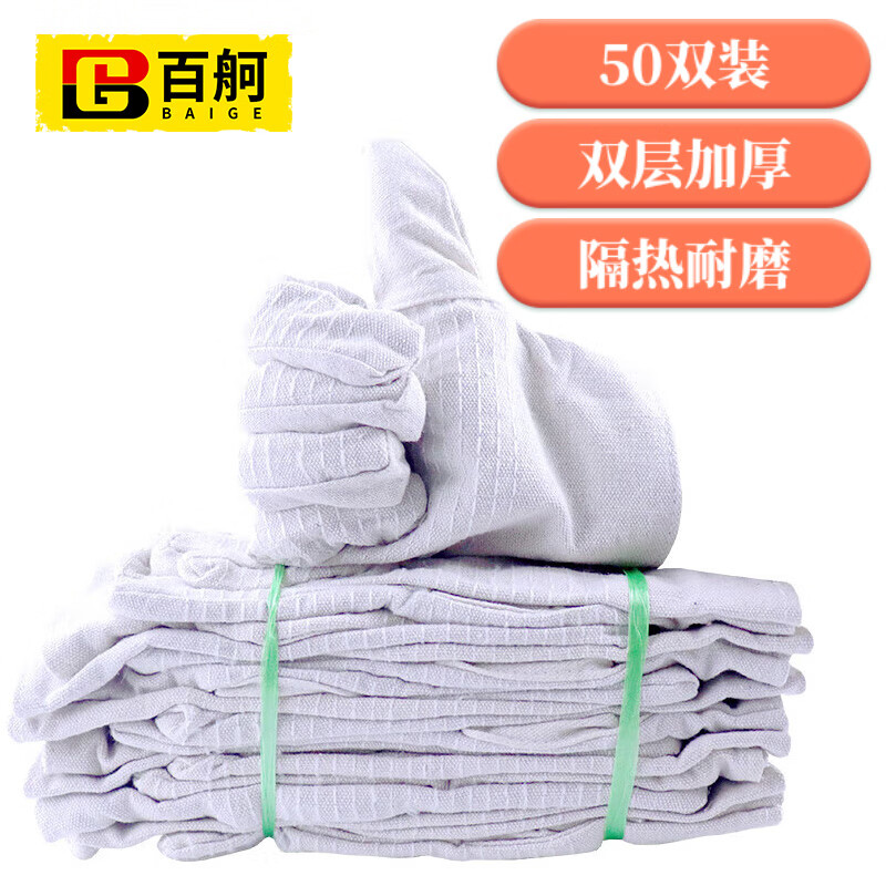 百舸 双层帆布手套 24道线加厚 50双(单位:包) 白色