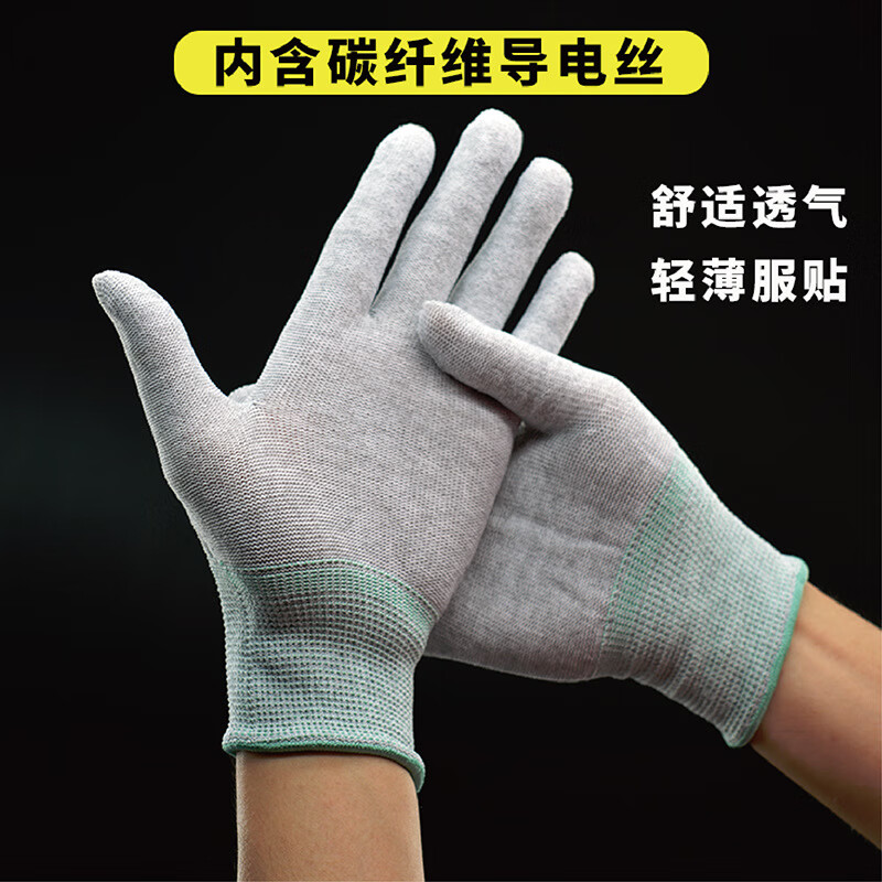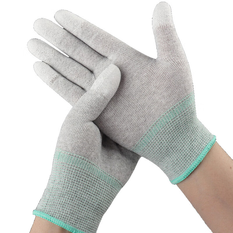 百舸 碳纤维涂指防静电手套薄款 M码 十双装(单位:包) 灰色