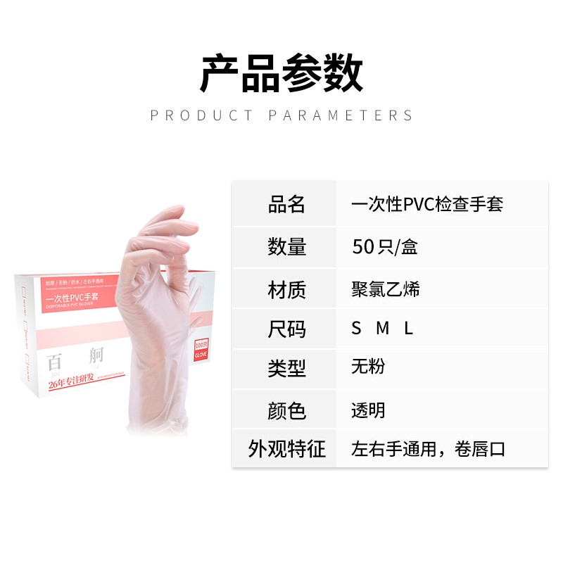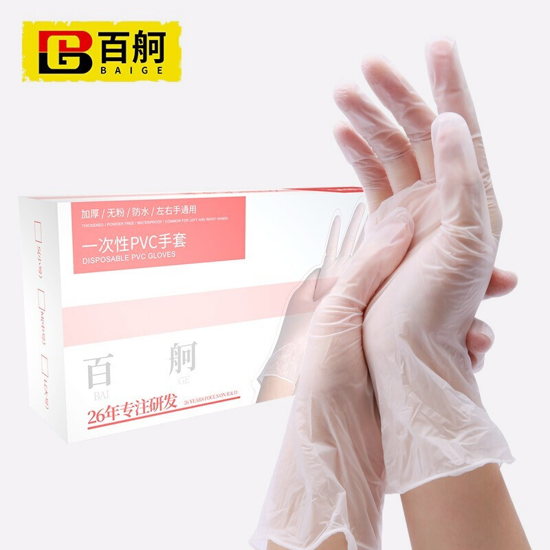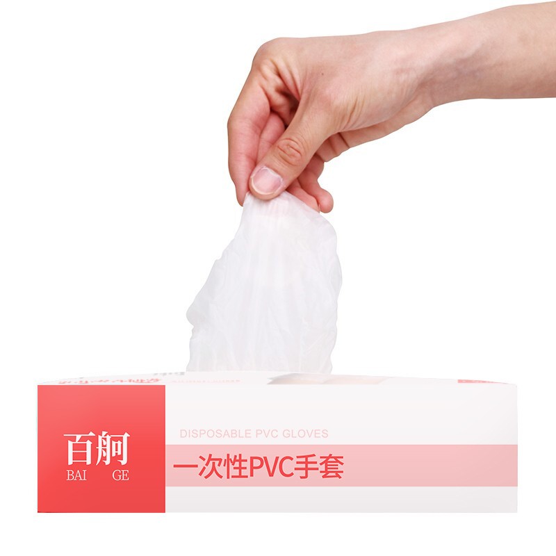 百舸 一次性PVC手套 加厚 1盒 L(单位:盒) 透明