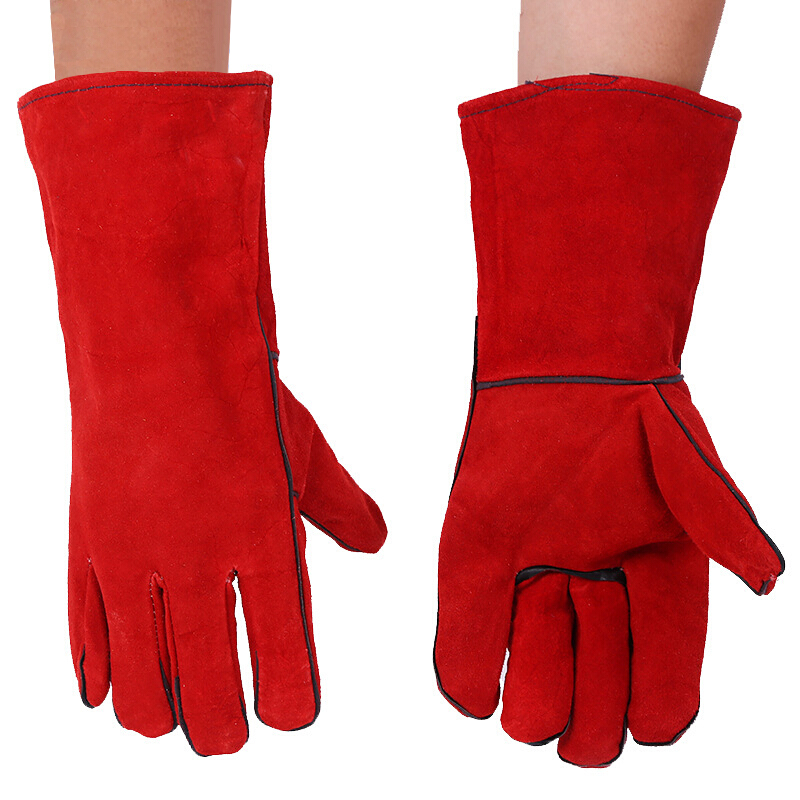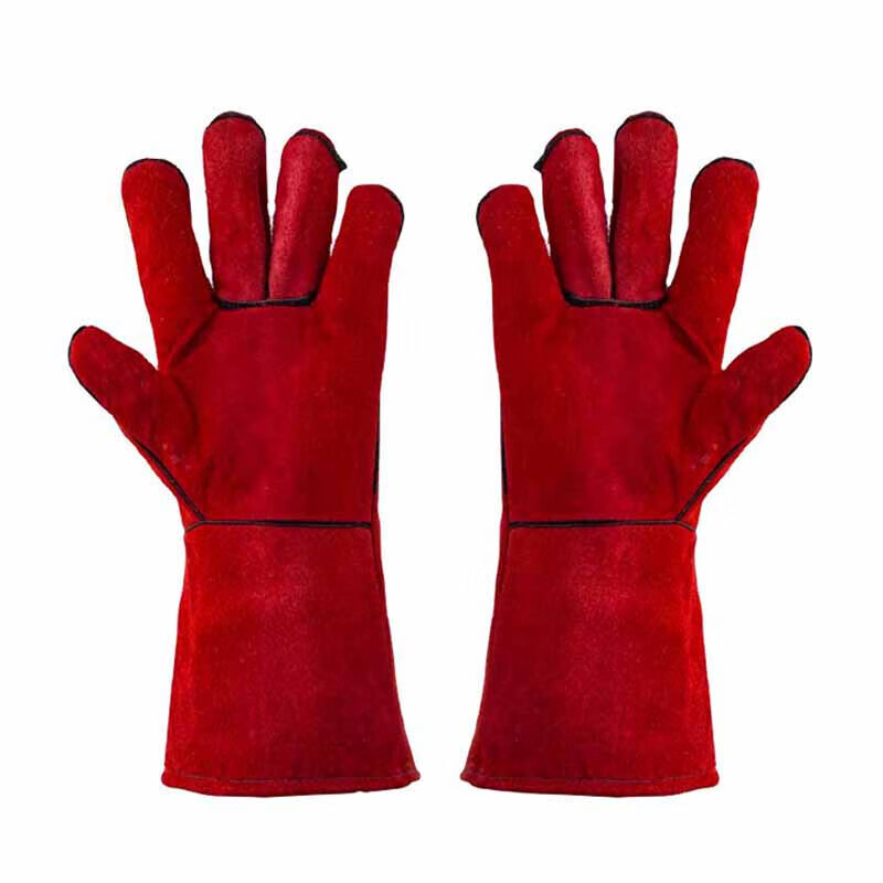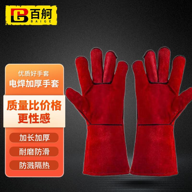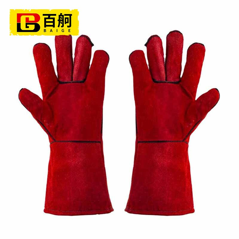 百舸牛皮加长电焊手套 防高温阻燃耐磨(红色)(单位:双) 红色