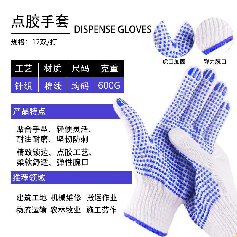 鸣固 点塑手套 点珠点胶防滑 600克12双(单位:包) 蓝色
