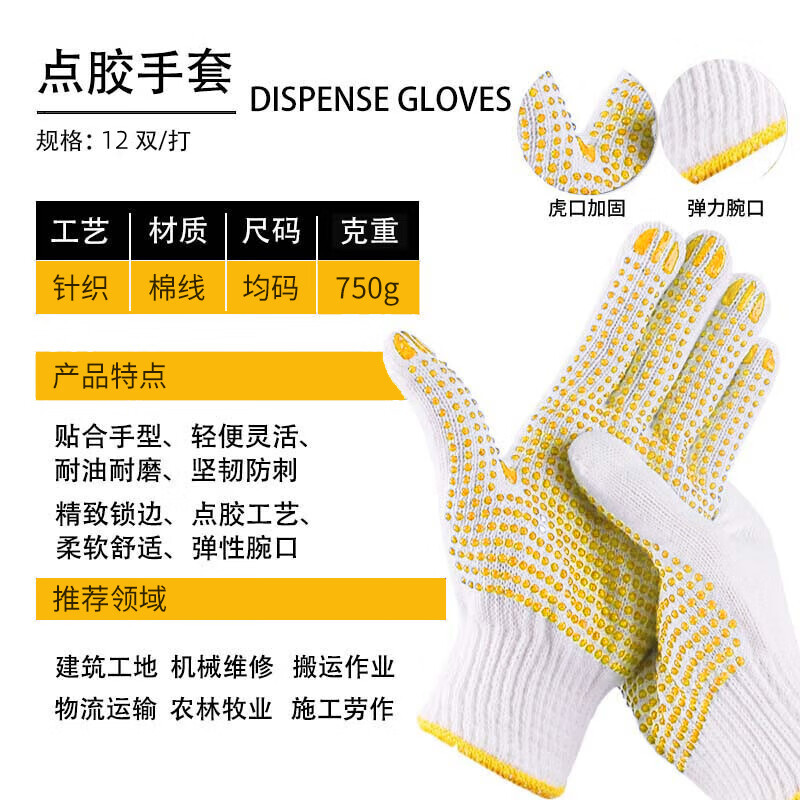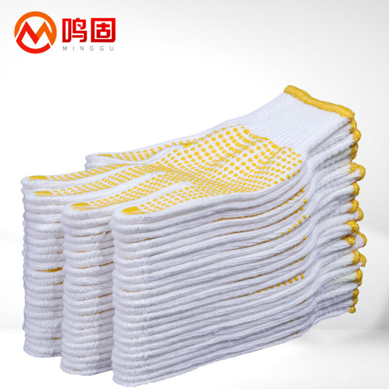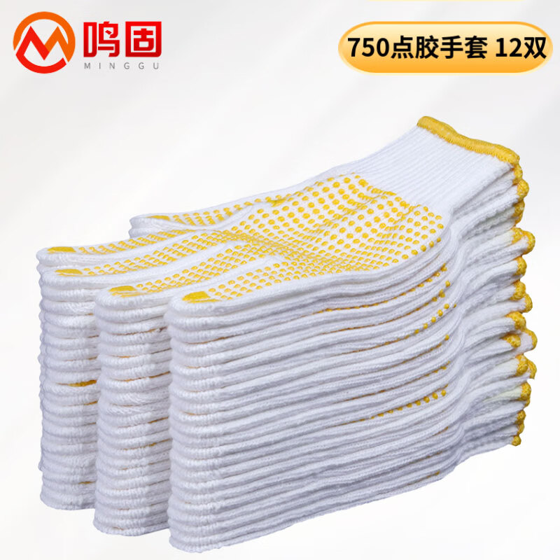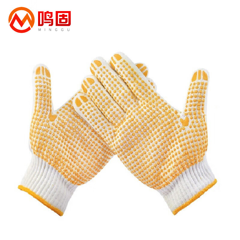 鸣固 点塑手套 点珠点胶防滑 750克12双(单位:包) 黄色