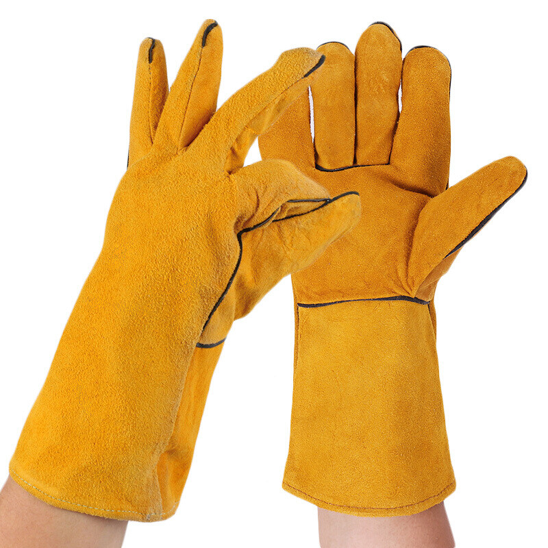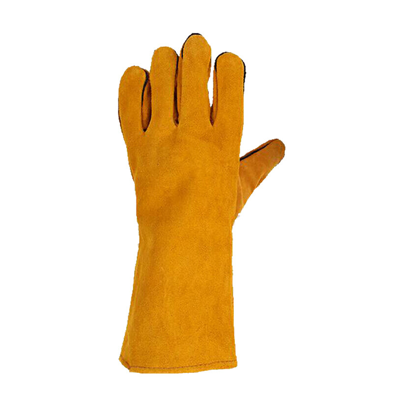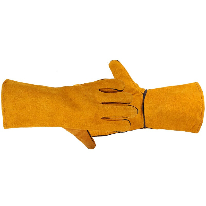 鸣固 电焊手套牛皮挂里加长加厚耐高温 一副(单位:副) 黄色