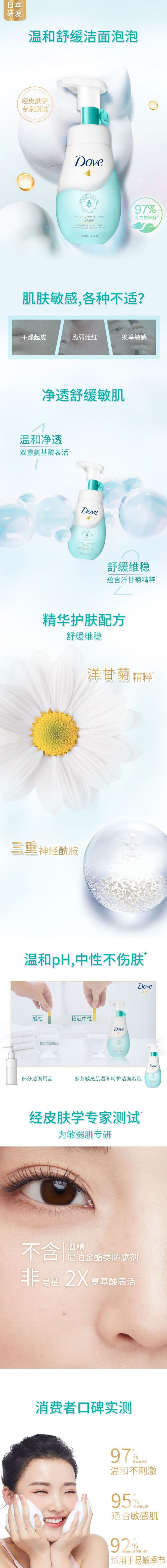 多芬敏感温和呵护氨基酸洁面泡泡160ML (单位:瓶) 混色