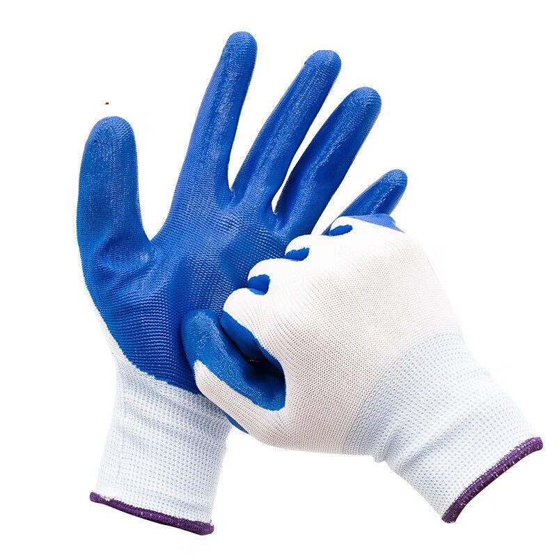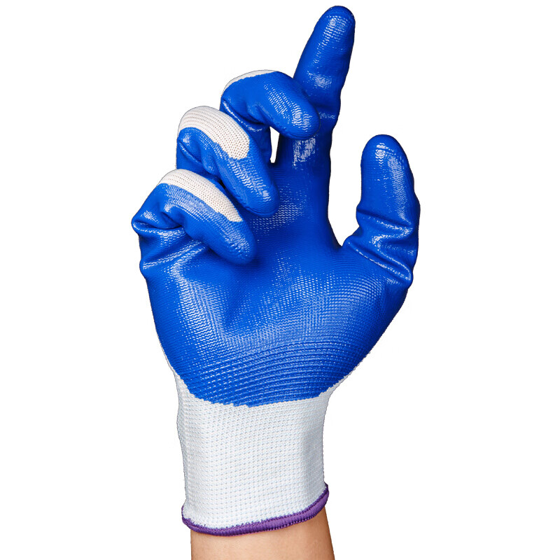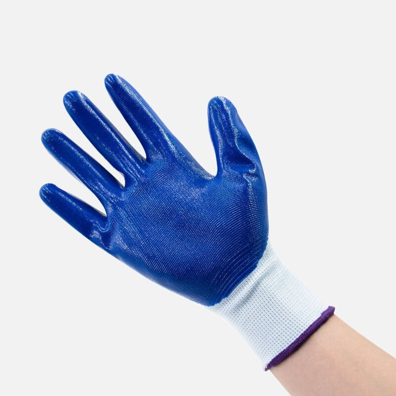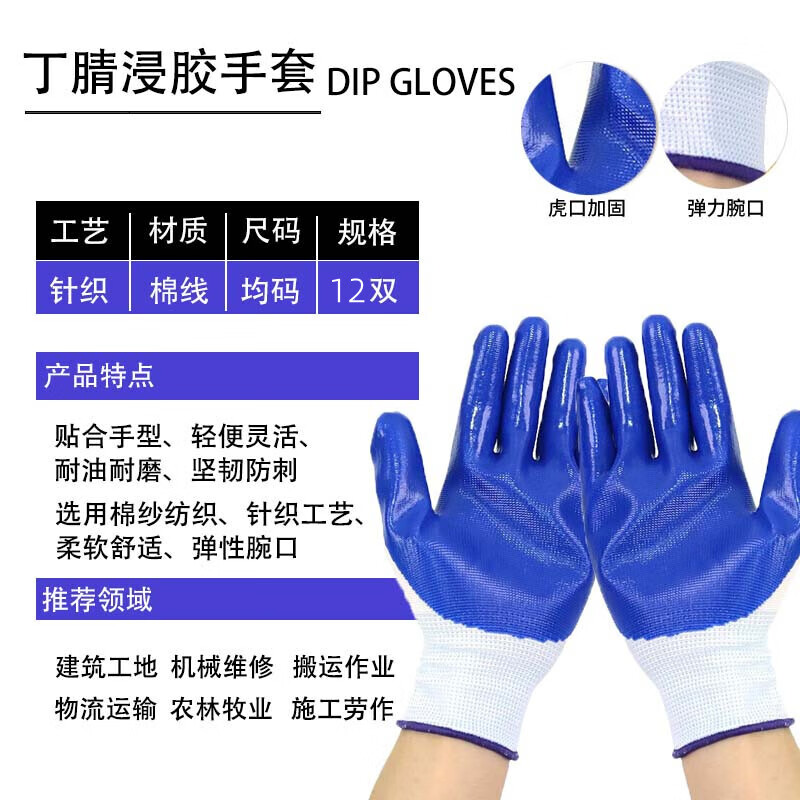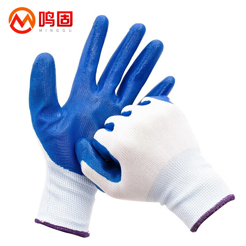鸣固 劳保手套尼龙丁腈涂胶手套 12副(单位:包) 蓝色