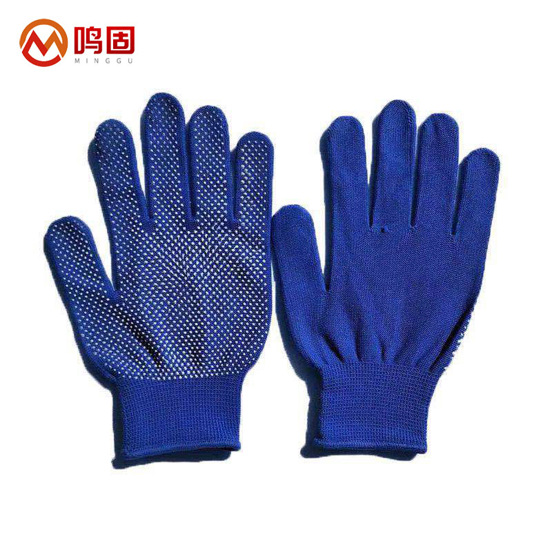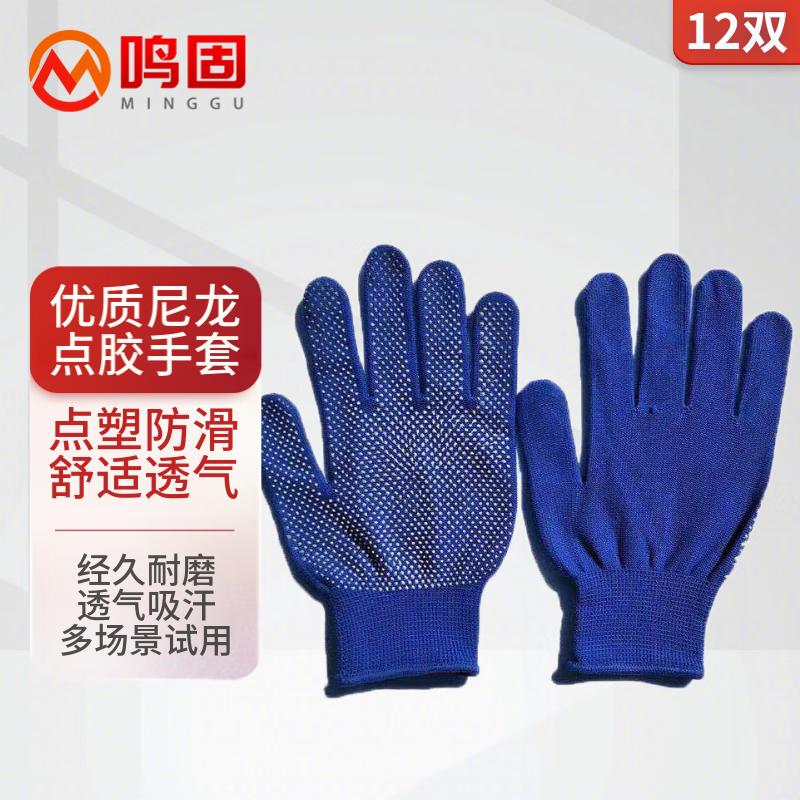 鸣固 尼龙点胶手套 耐磨防滑 12双 蓝色(单位:包) 蓝色
