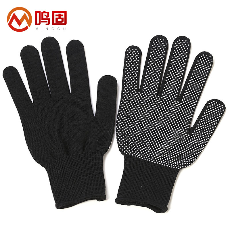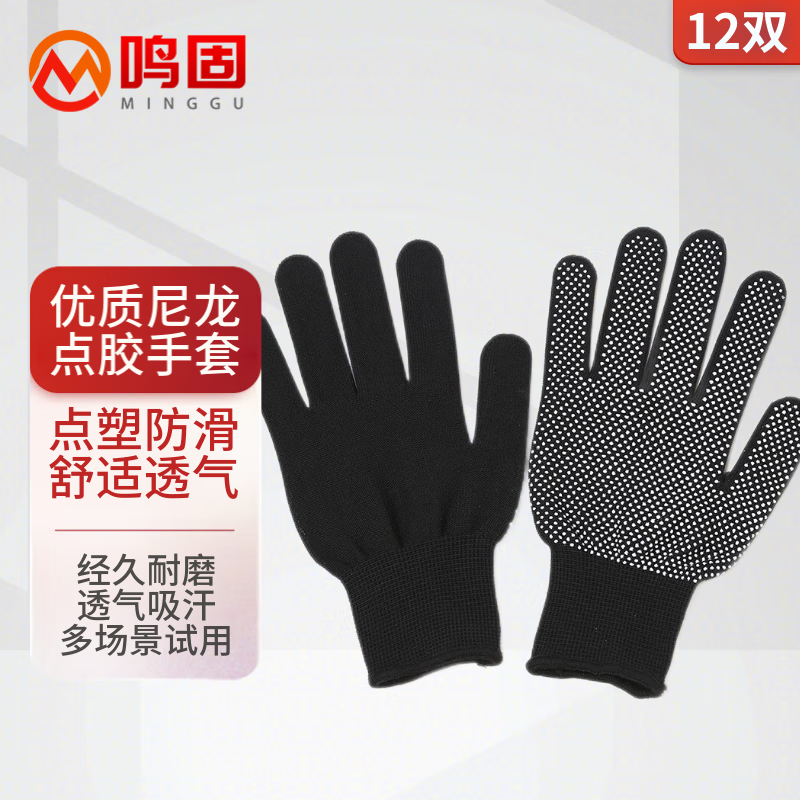 鸣固 尼龙点胶手套 耐磨防滑12双 黑色(单位:包) 黑色