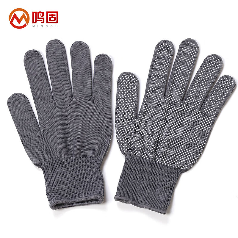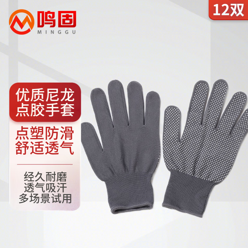 鸣固 尼龙点胶手套 耐磨防滑12双 灰色(单位:包) 灰色