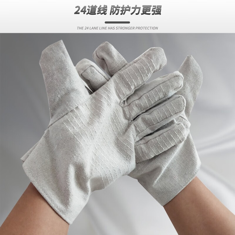 鸣固 双层全帆布手套 加厚24道线【10双装】(单位:包) 白色