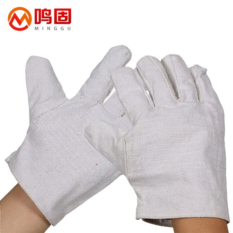 鸣固 双层全帆布手套耐磨加厚24道线白革步10双(单位:包) 白色