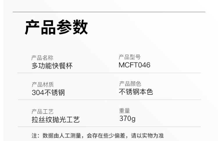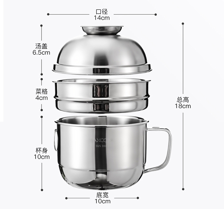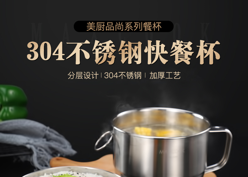 美厨304不锈钢多彩快餐杯14cm品尚系列 MCFT046(单位:个)