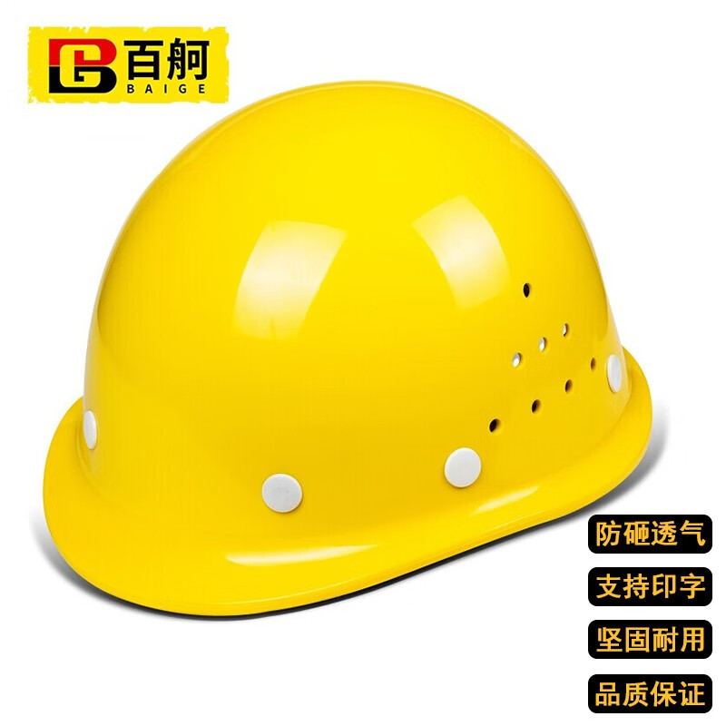 百舸 ABS高强度安全帽 圆顶安全帽 ABS透气 黄色(单位:个) 黄色