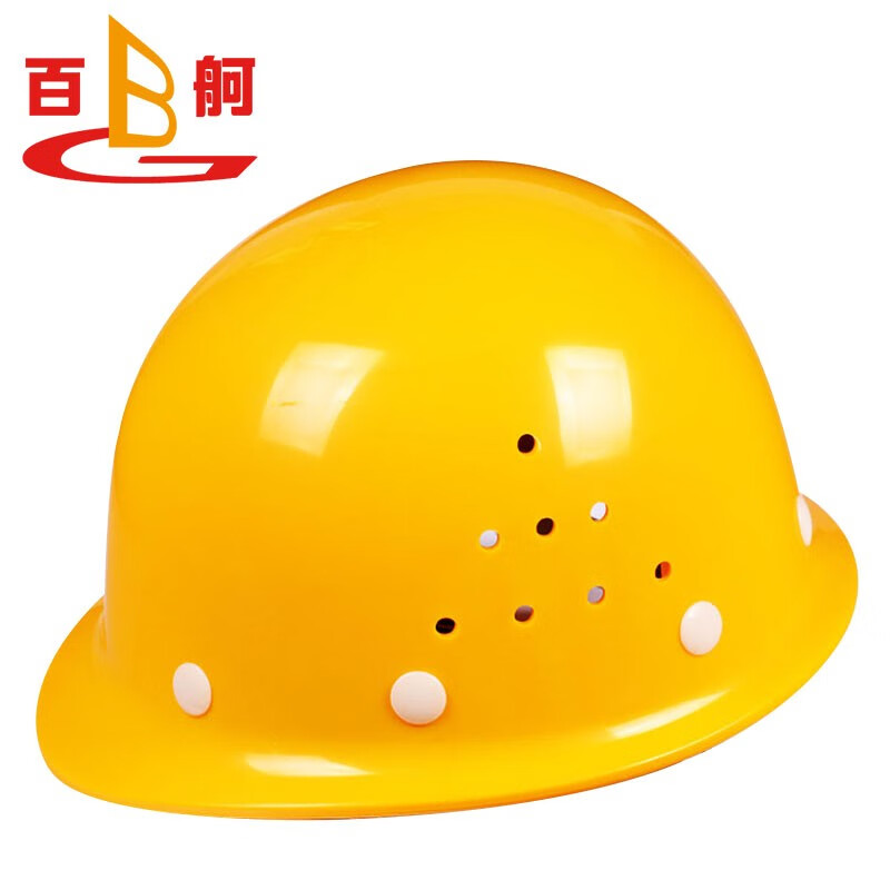 百舸 安全帽 ABS高强度劳保头盔 圆顶透气款 黄色(单位:个) 黄色