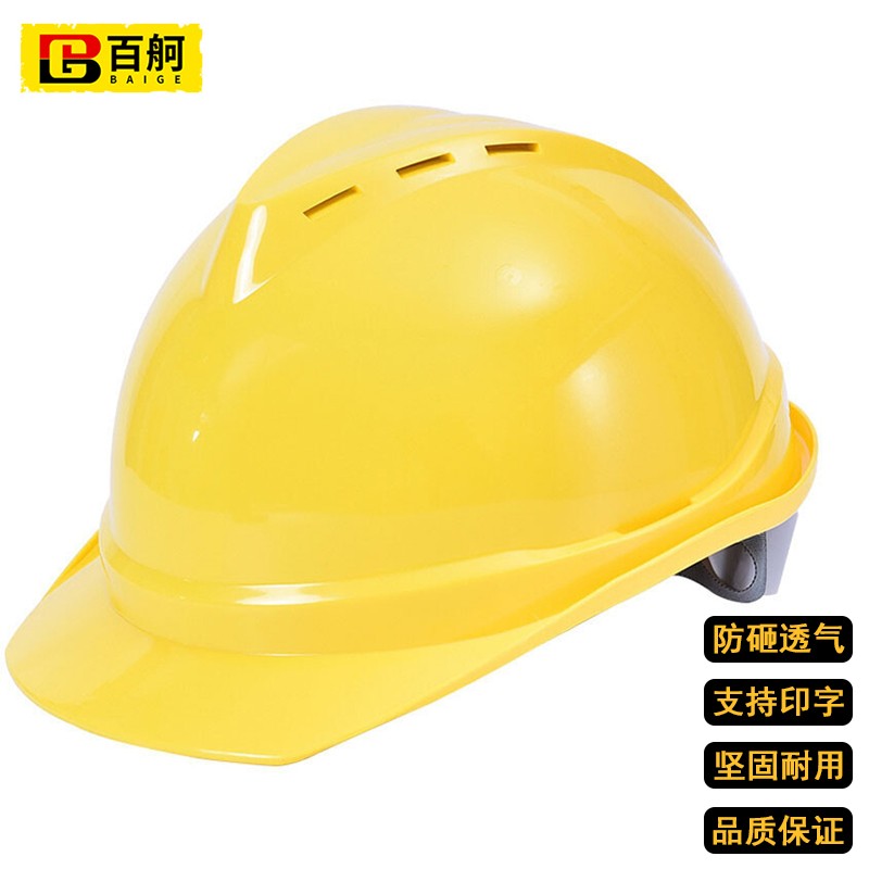 百舸 安全帽ABS材质防砸抗冲击透气工地安全帽 V型透气款 黄色(单位:个) 黄色