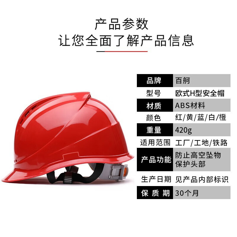 百舸 安全帽ABS材质安全帽防砸抗冲击安全帽 欧式H型透气款 红色(单位:个) 红色