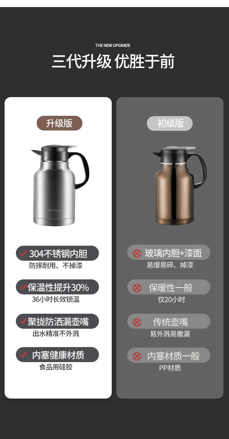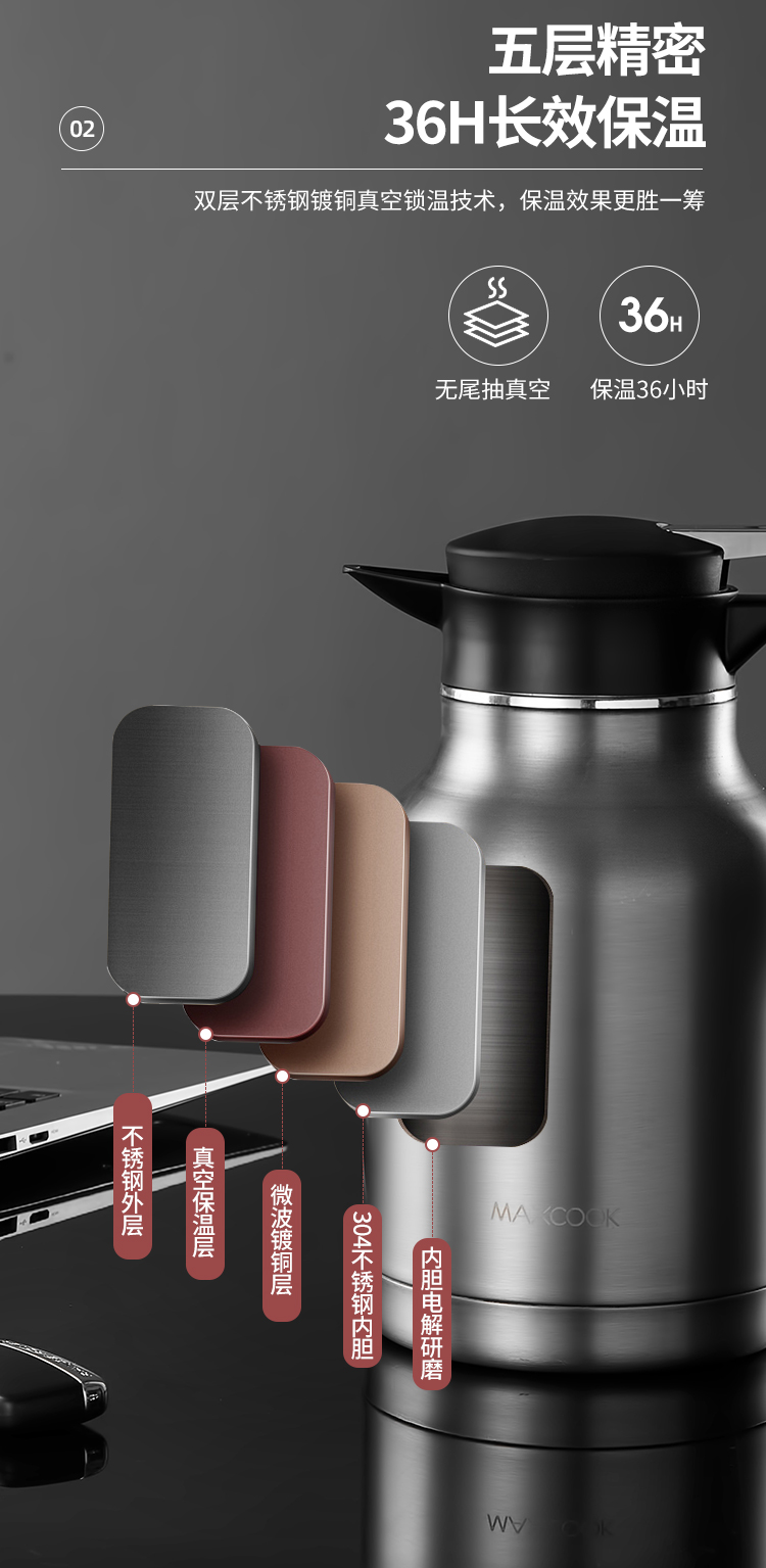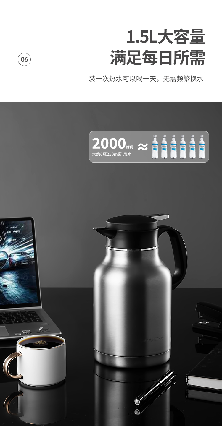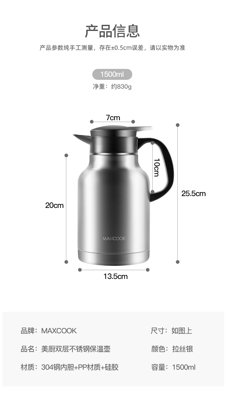 美厨保温卡仕壶(拉丝银)MCH6785(单位:个)